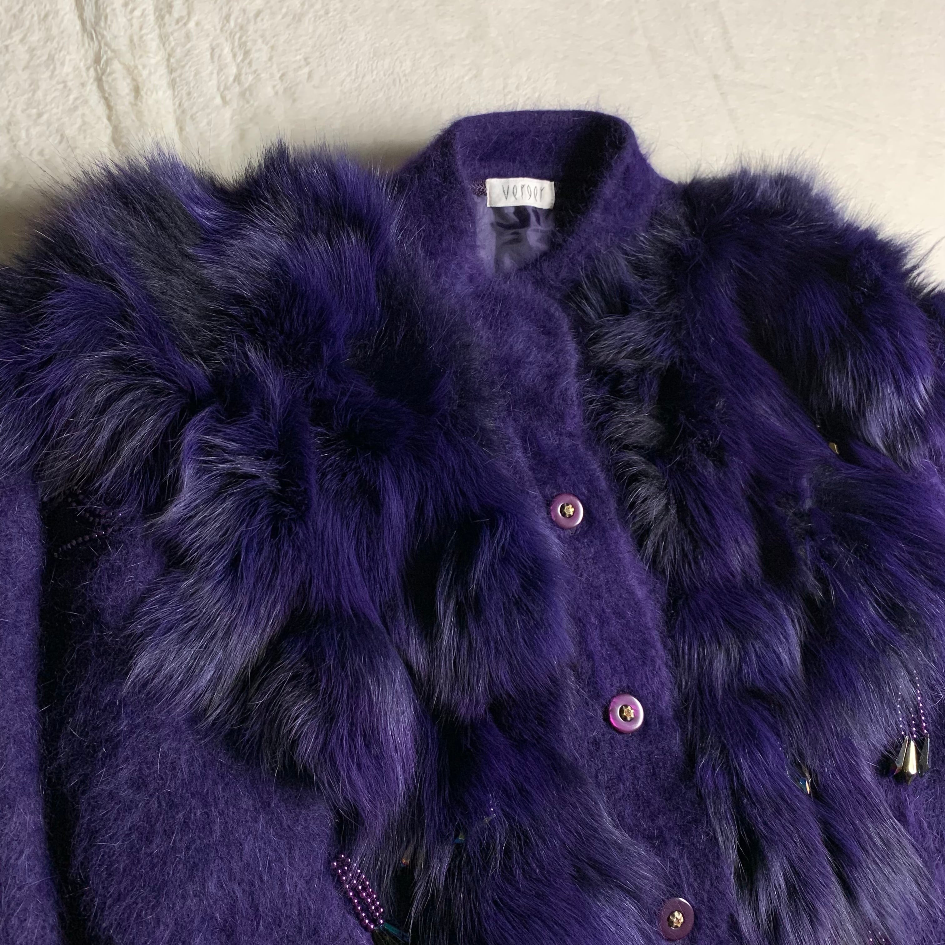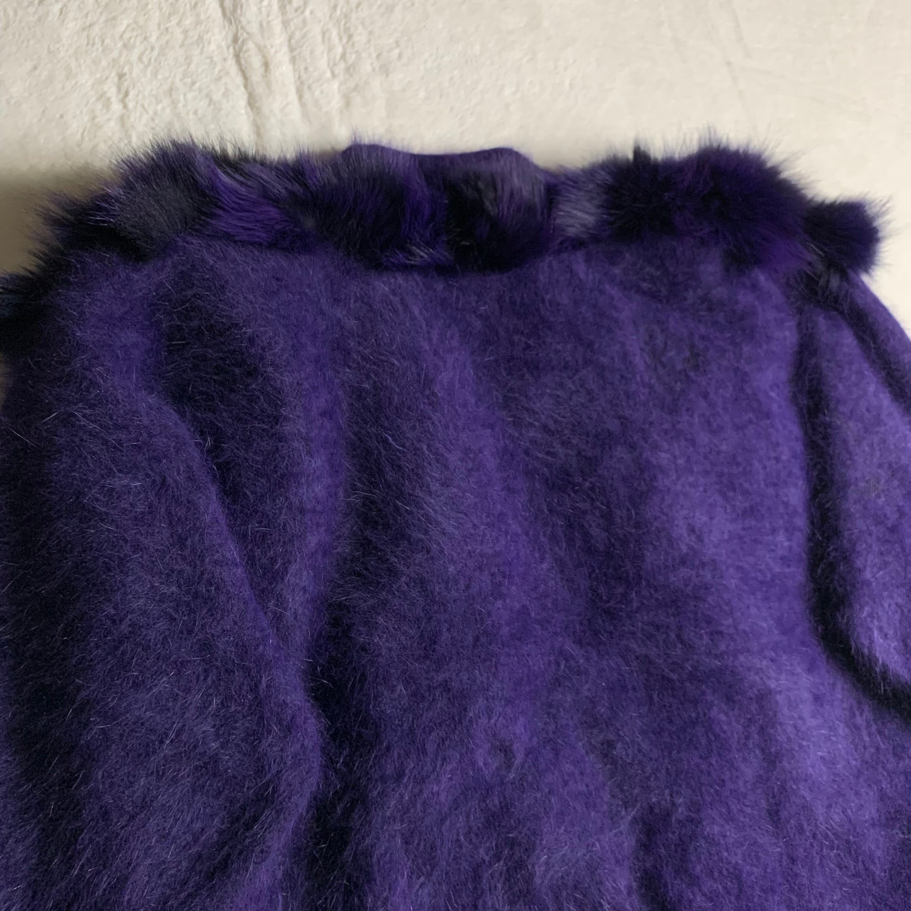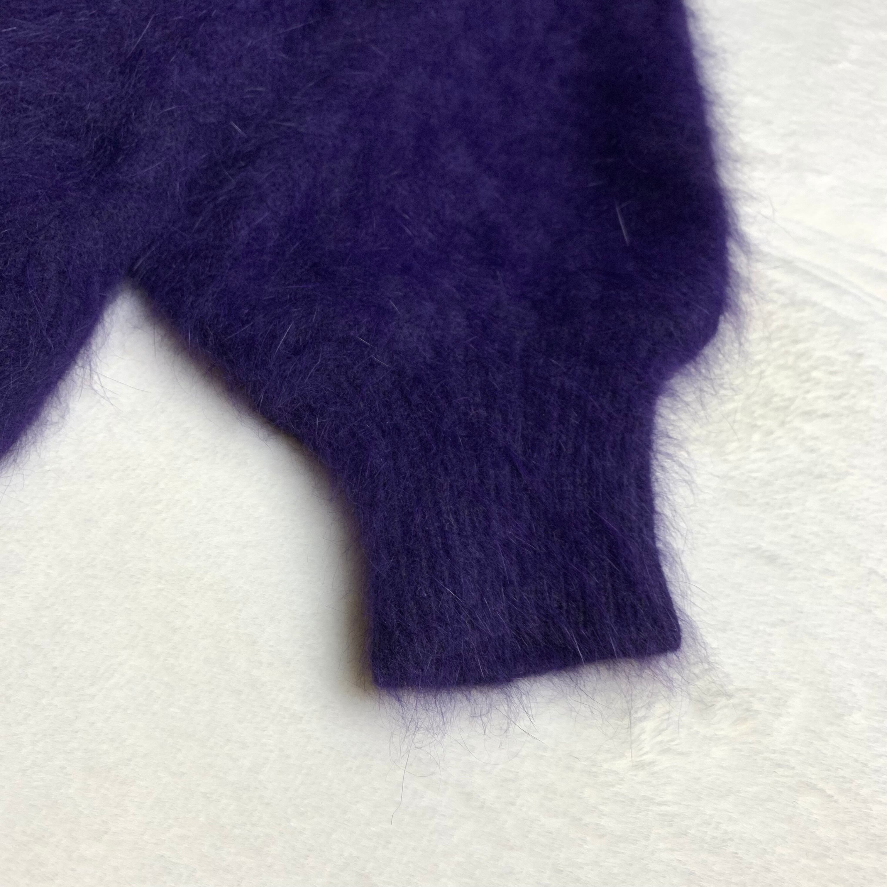 アンゴラ混の紫ニットカーディガンです。