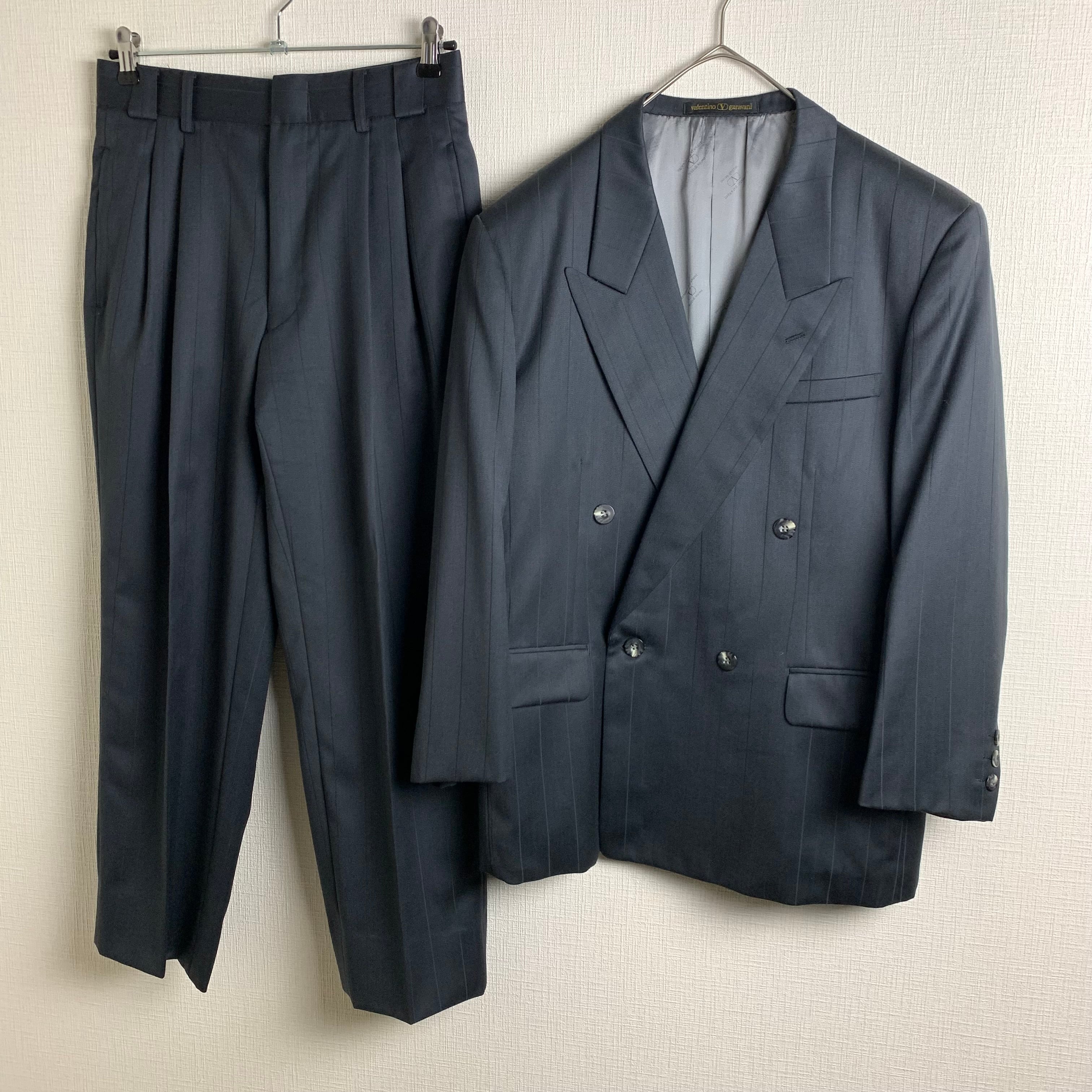 ダークグレーのストライプセットアップです。