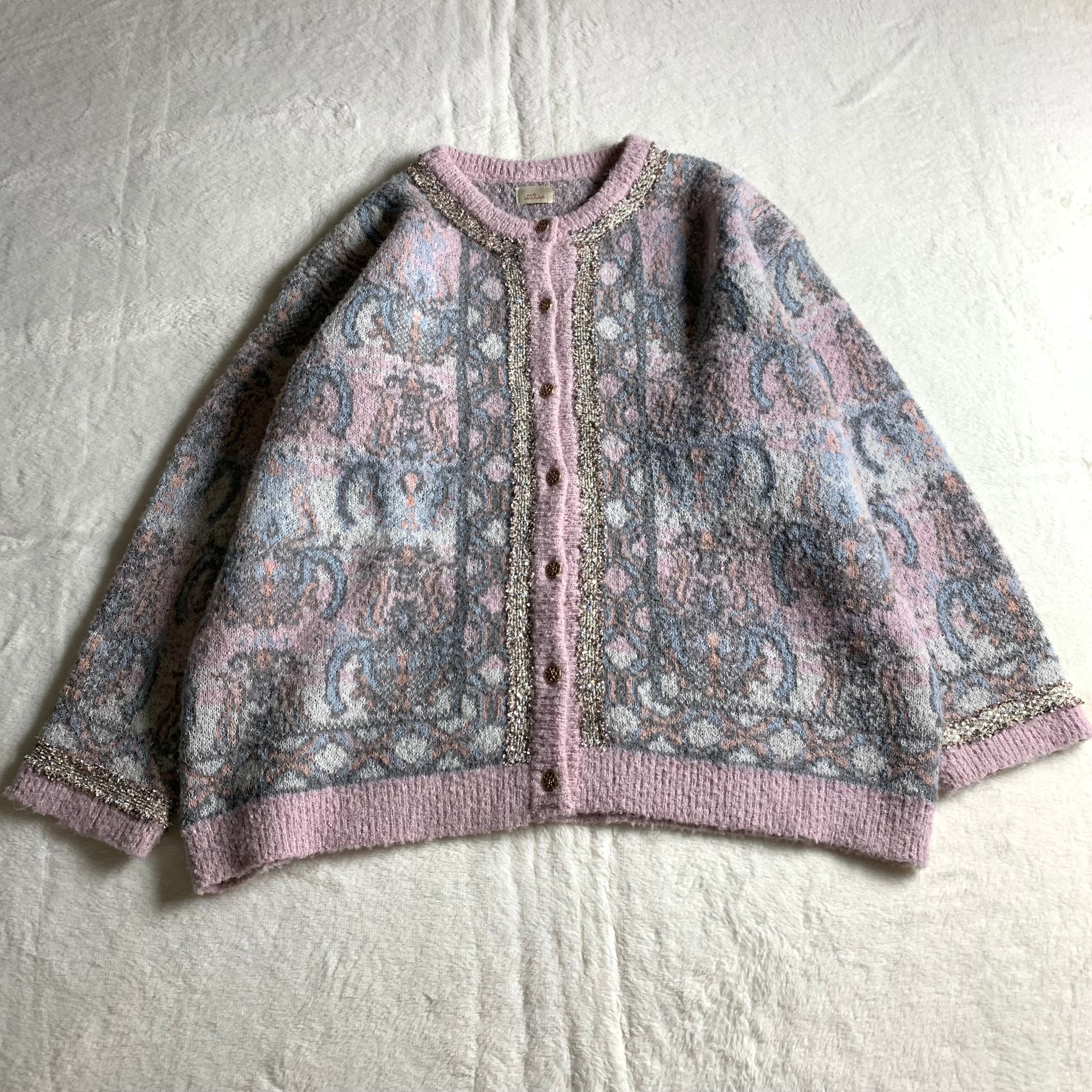 ピンクでかわいいジャガードニットカーディガンです。