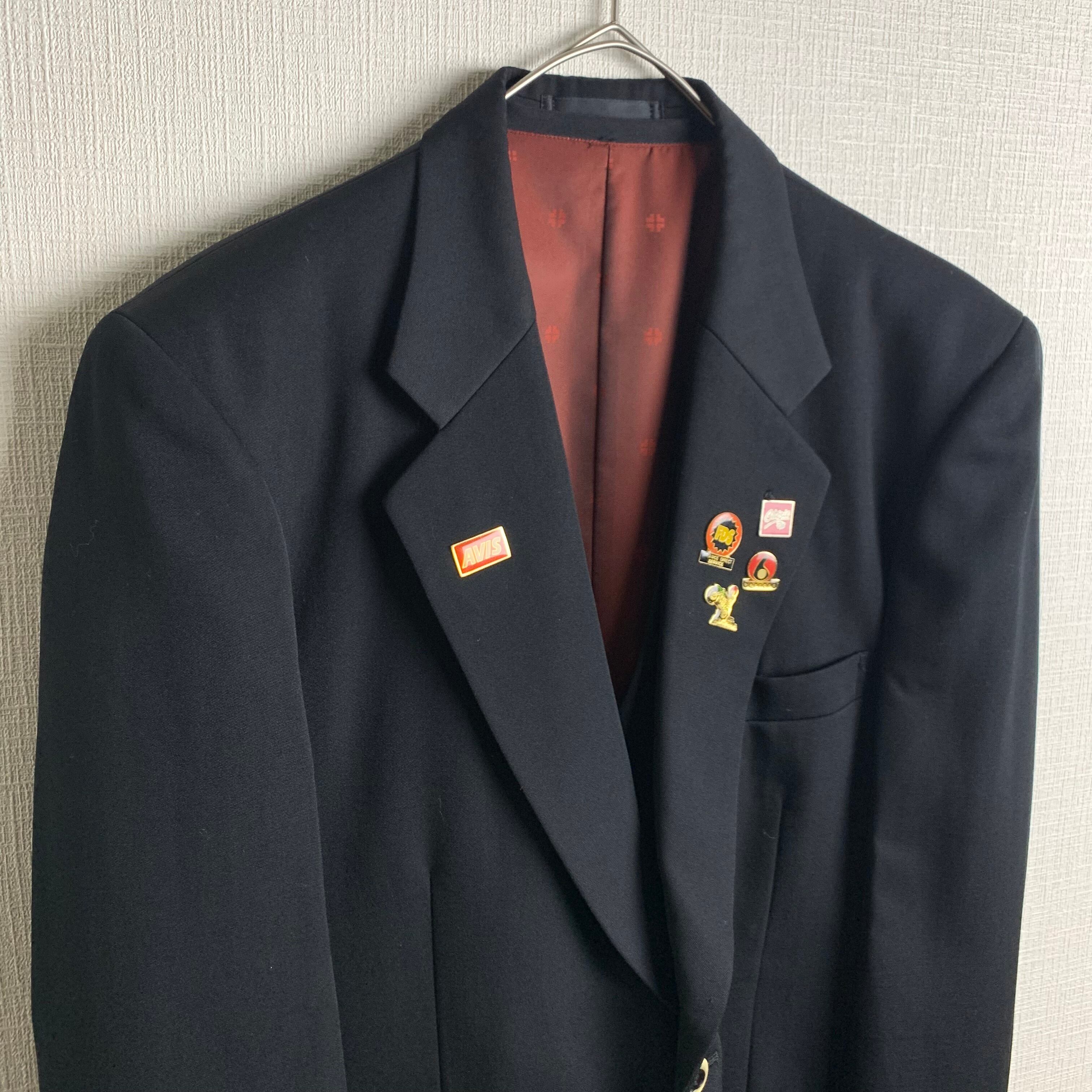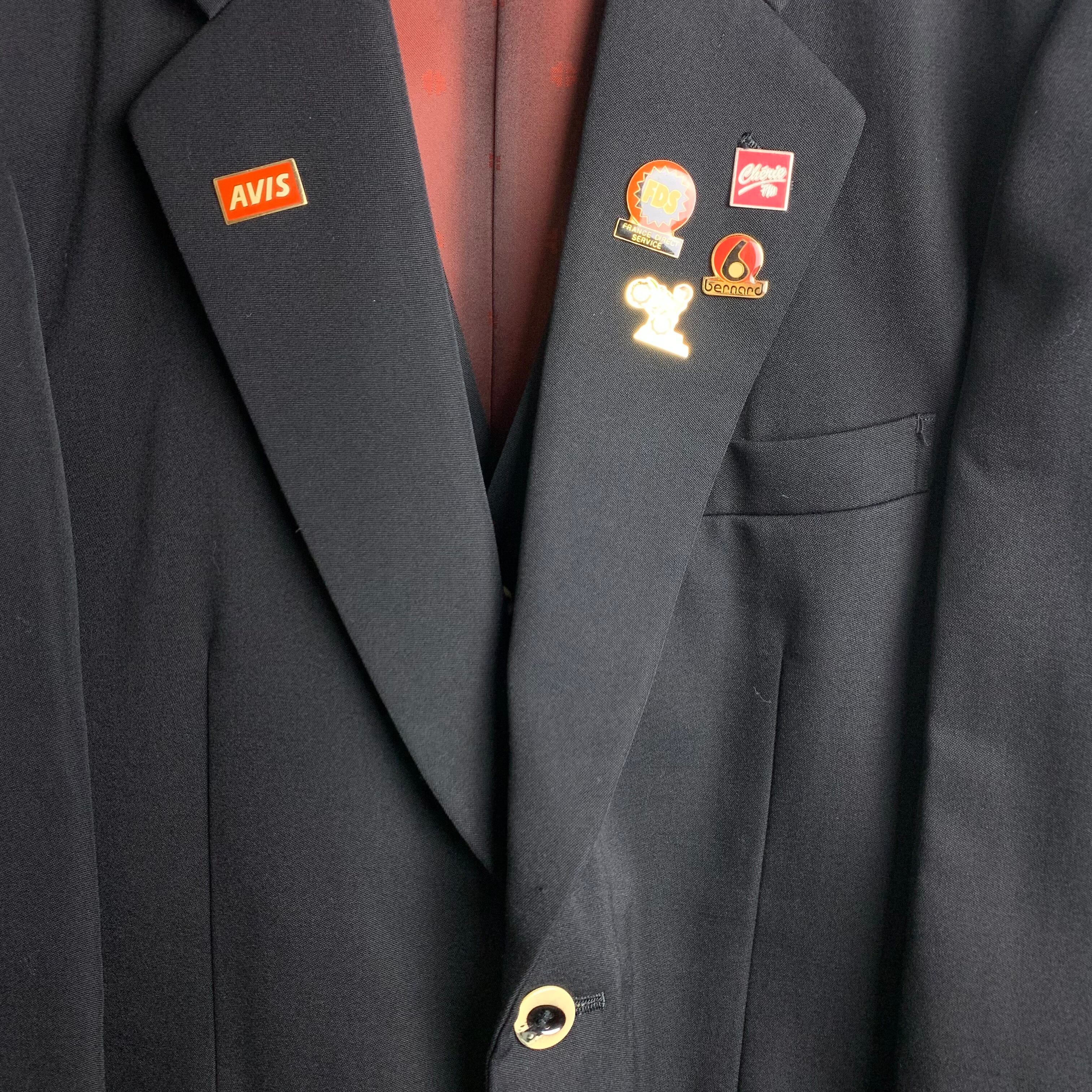 ベスト付きセットアップにフランスヴィンテージピンバッジを付けました。