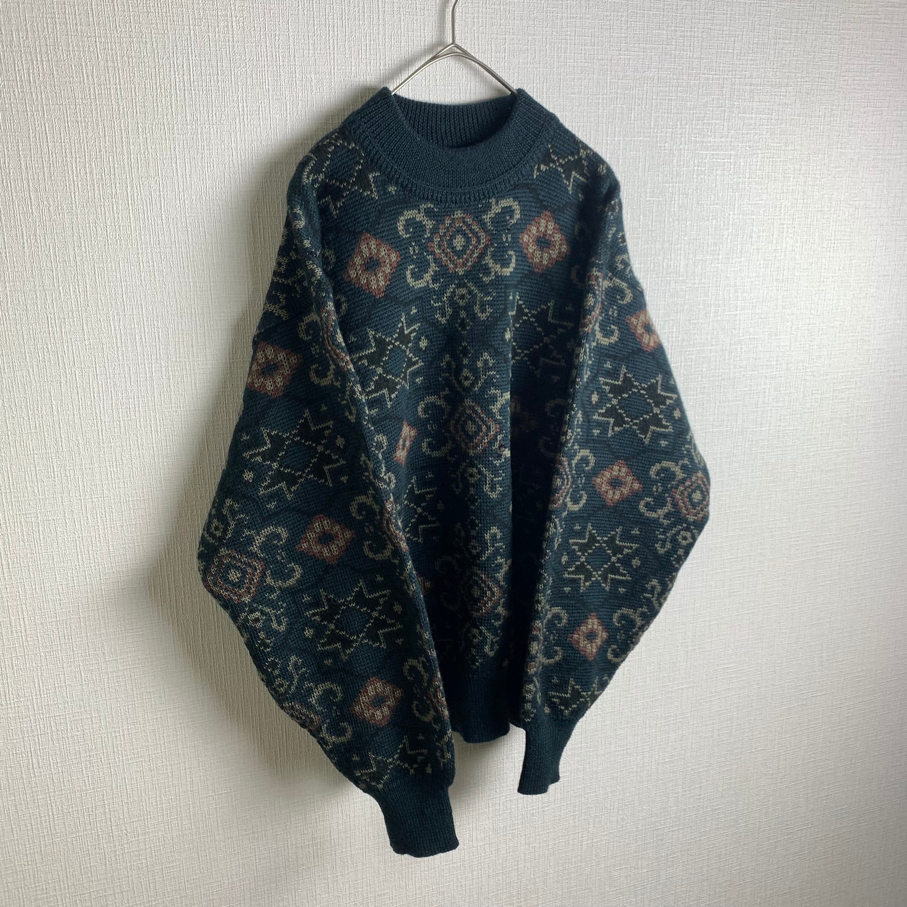 ダークグリーンの総柄ニットです。