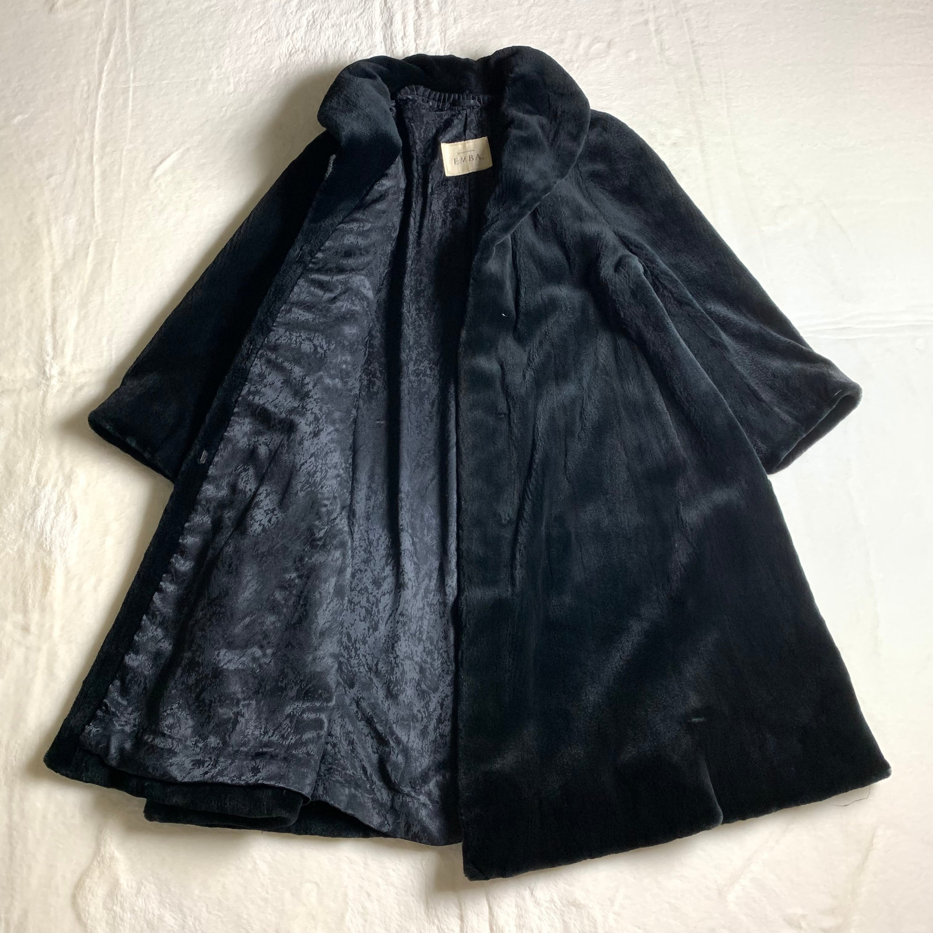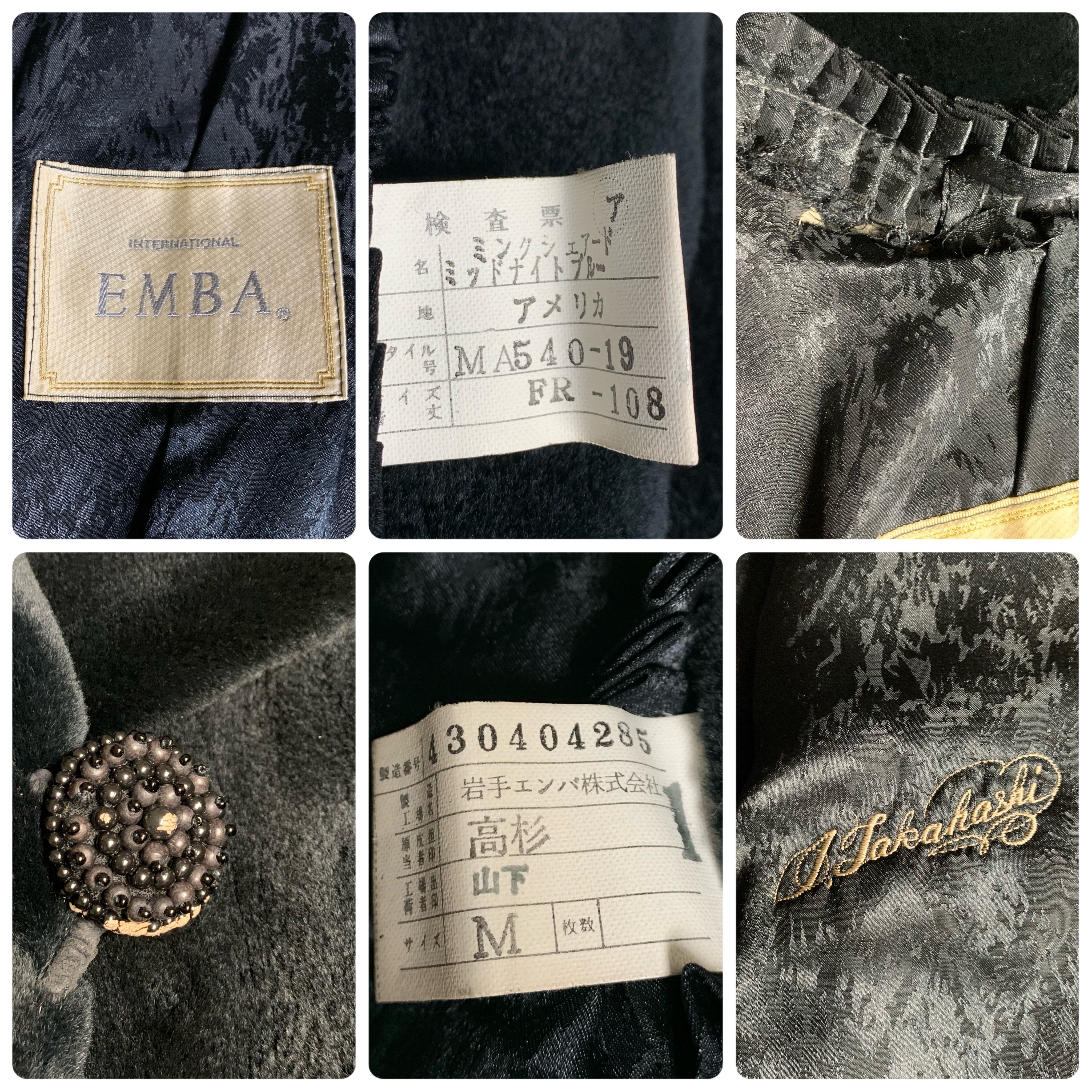 ミッドナイトブルーのEMBAのロングコートです。裏地も総柄でボタンも特徴的です。