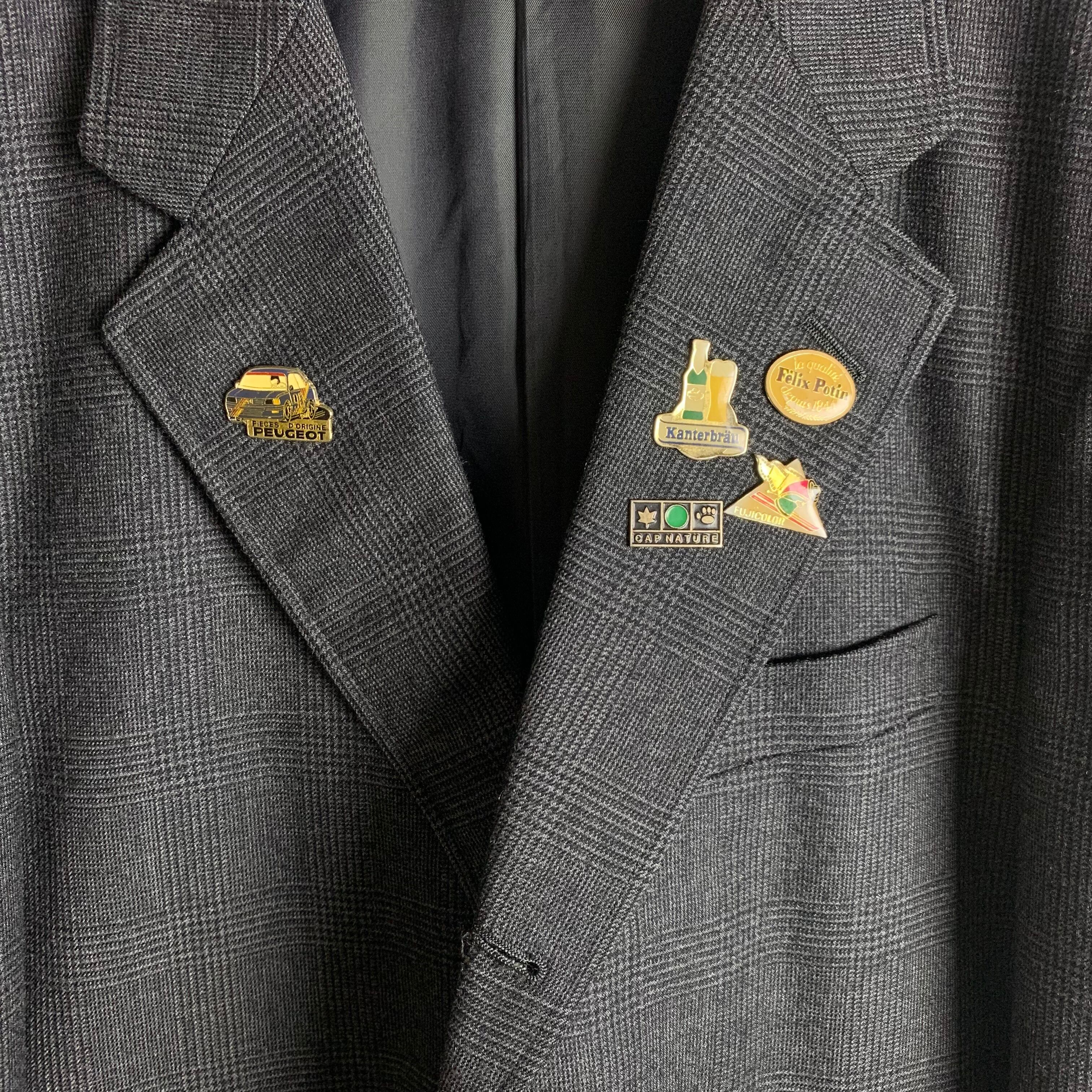 ベスト付きセットアップにフランスヴィンテージピンバッジを付けました。