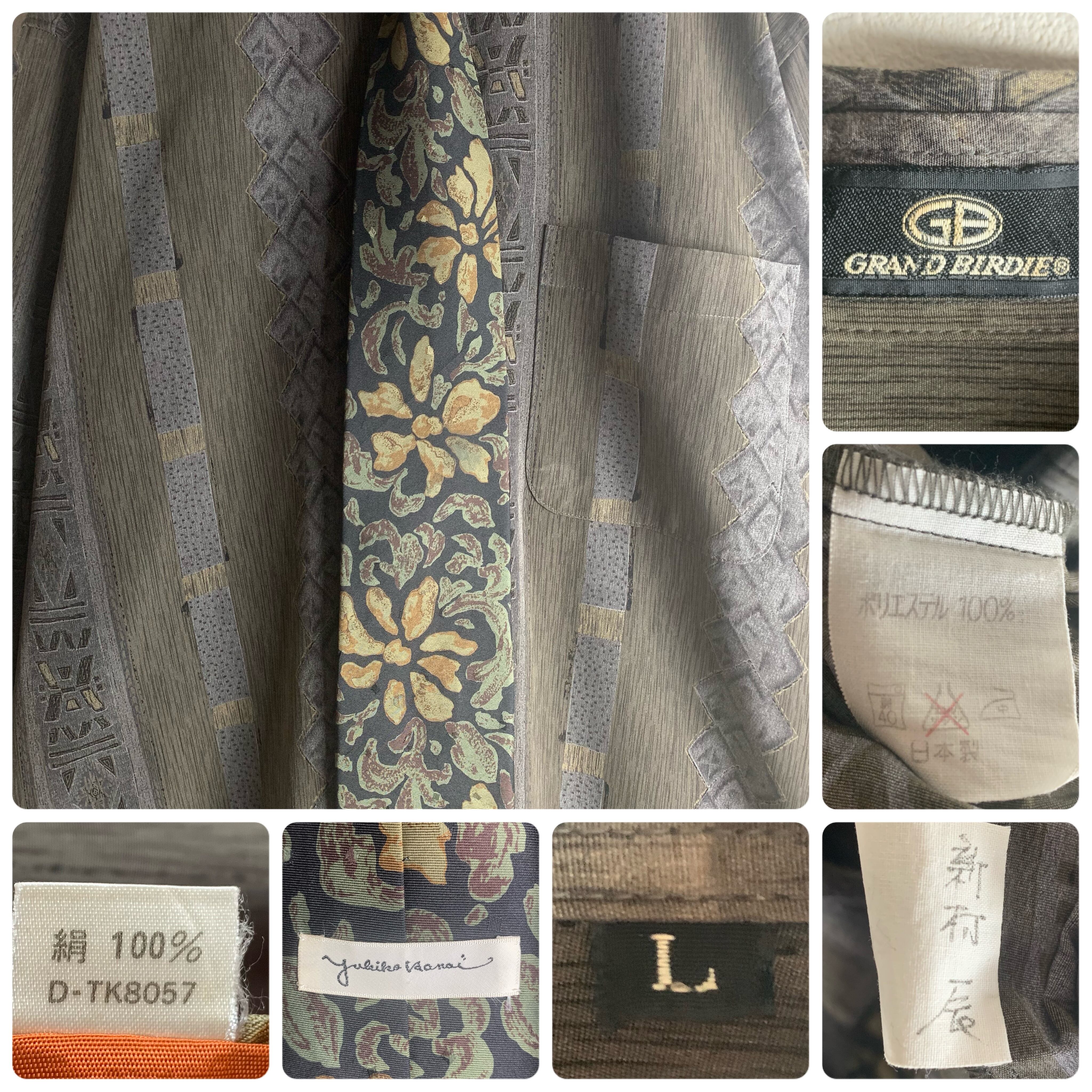 ネクタイシャツ:ダークカラー総柄シャツにボタニカル柄ネクタイを付けました。