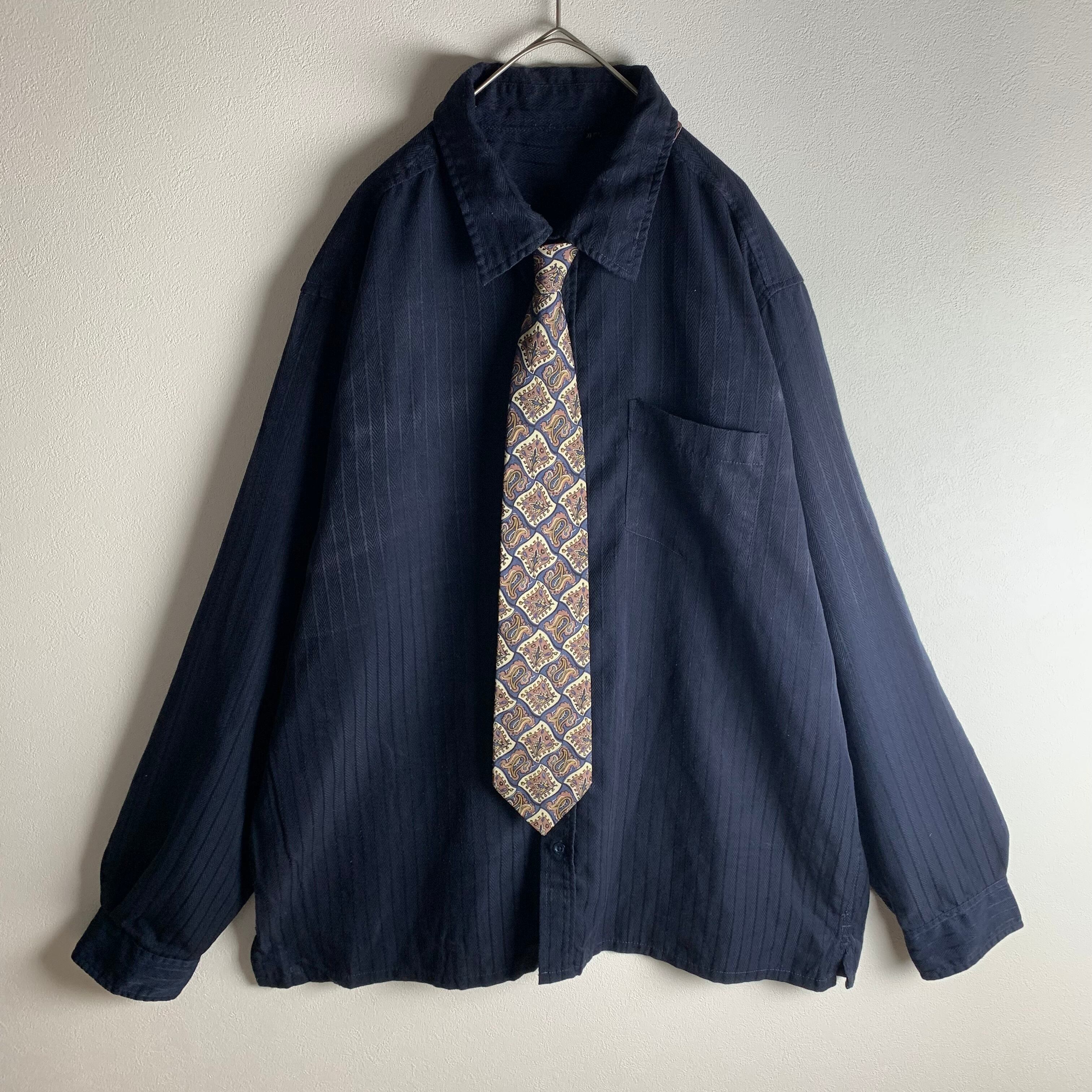 ネクタイシャツ:ストライプ風シャツに総柄ネクタイを付けました。