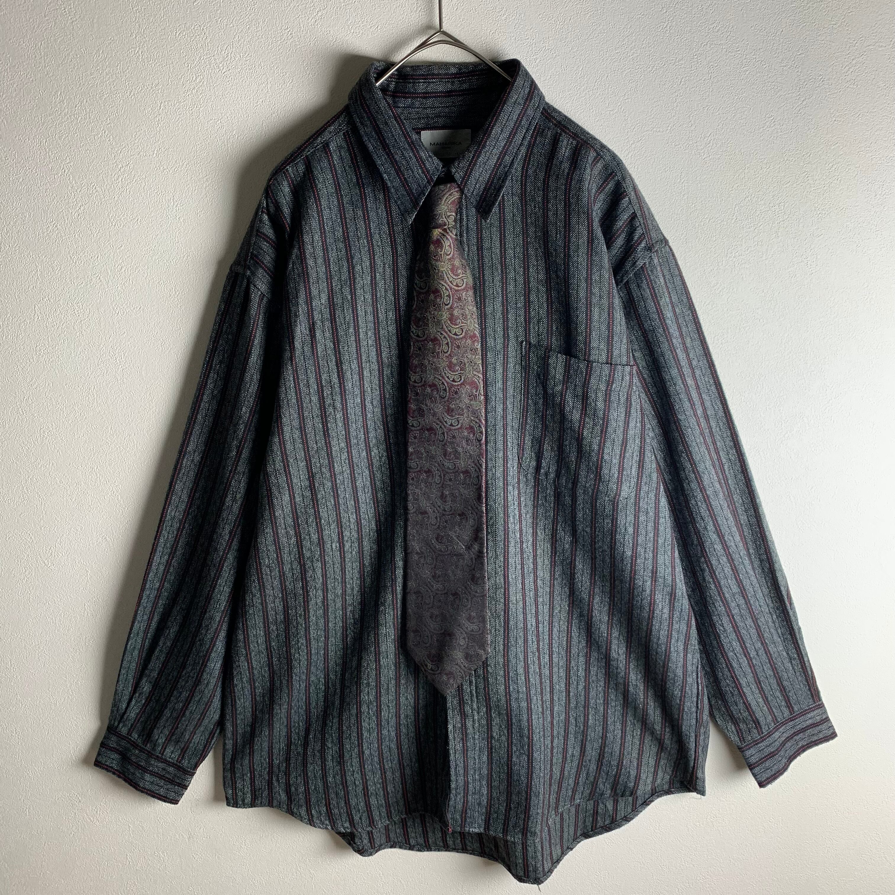 ネクタイシャツ:ストライプシャツにくすみペイズリー柄ネクタイを付けました。