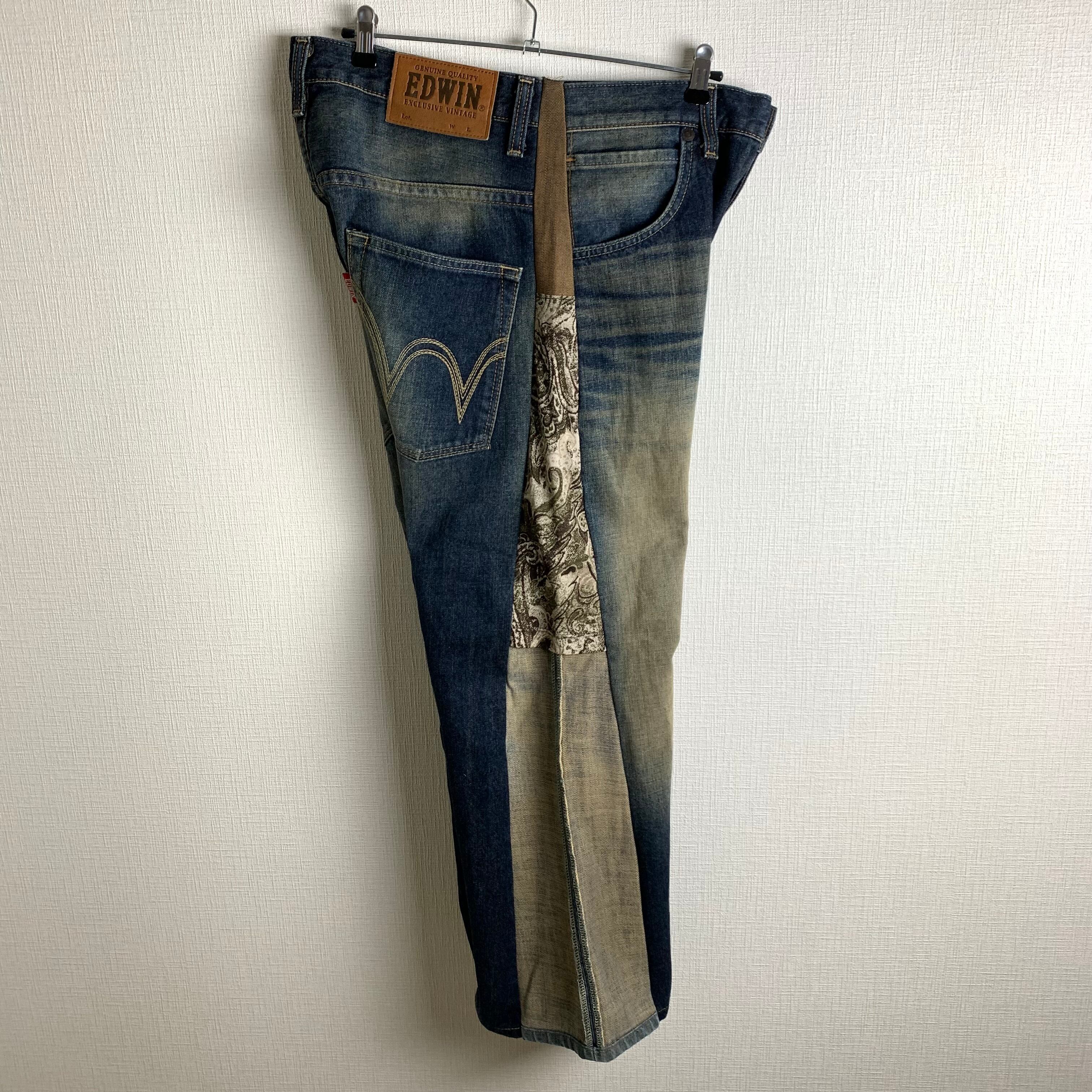 左足にダメージ入ってます。ウエストに少しズレがありますが着用には問題ありません。