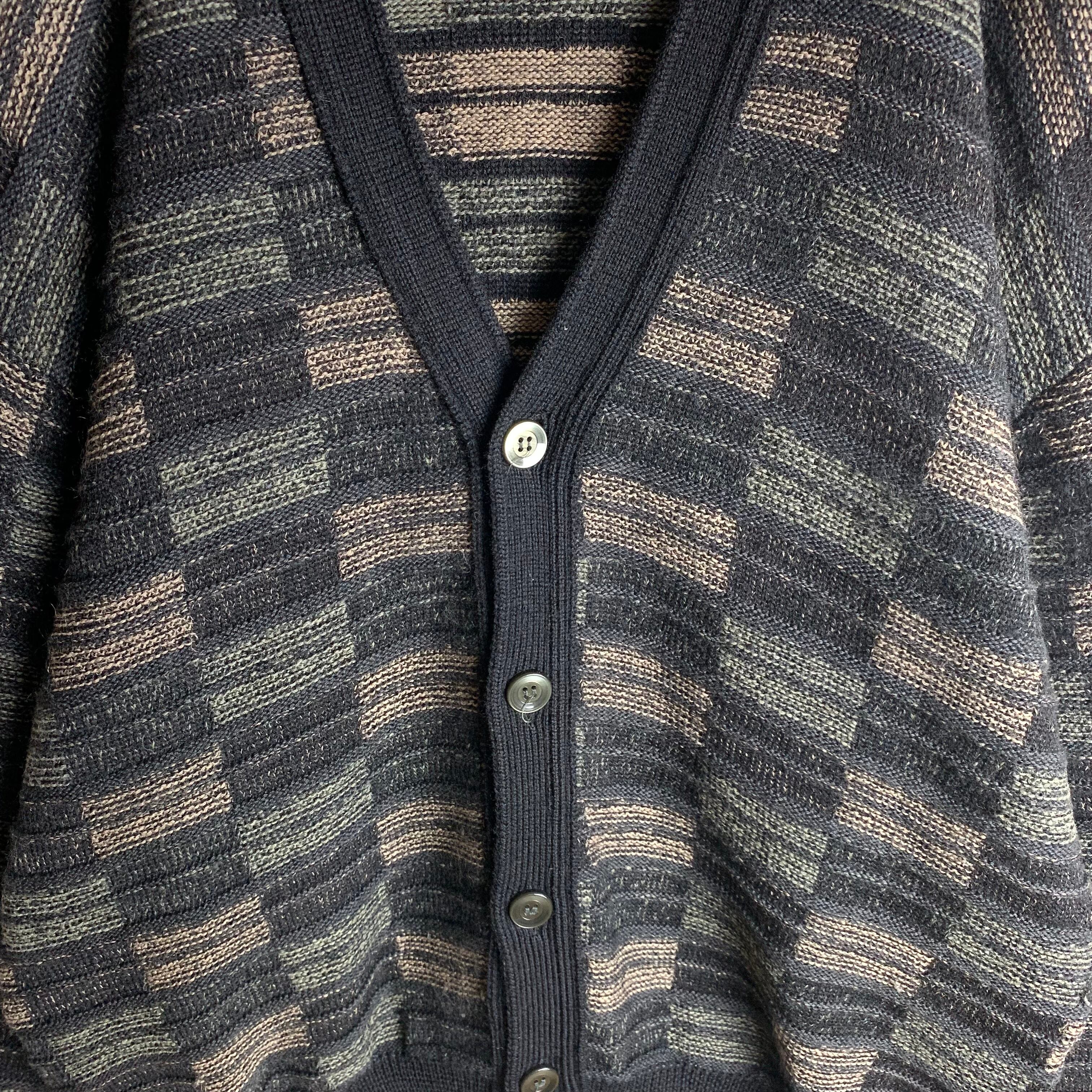 ダークカラーのパターン柄カーディガンです。
