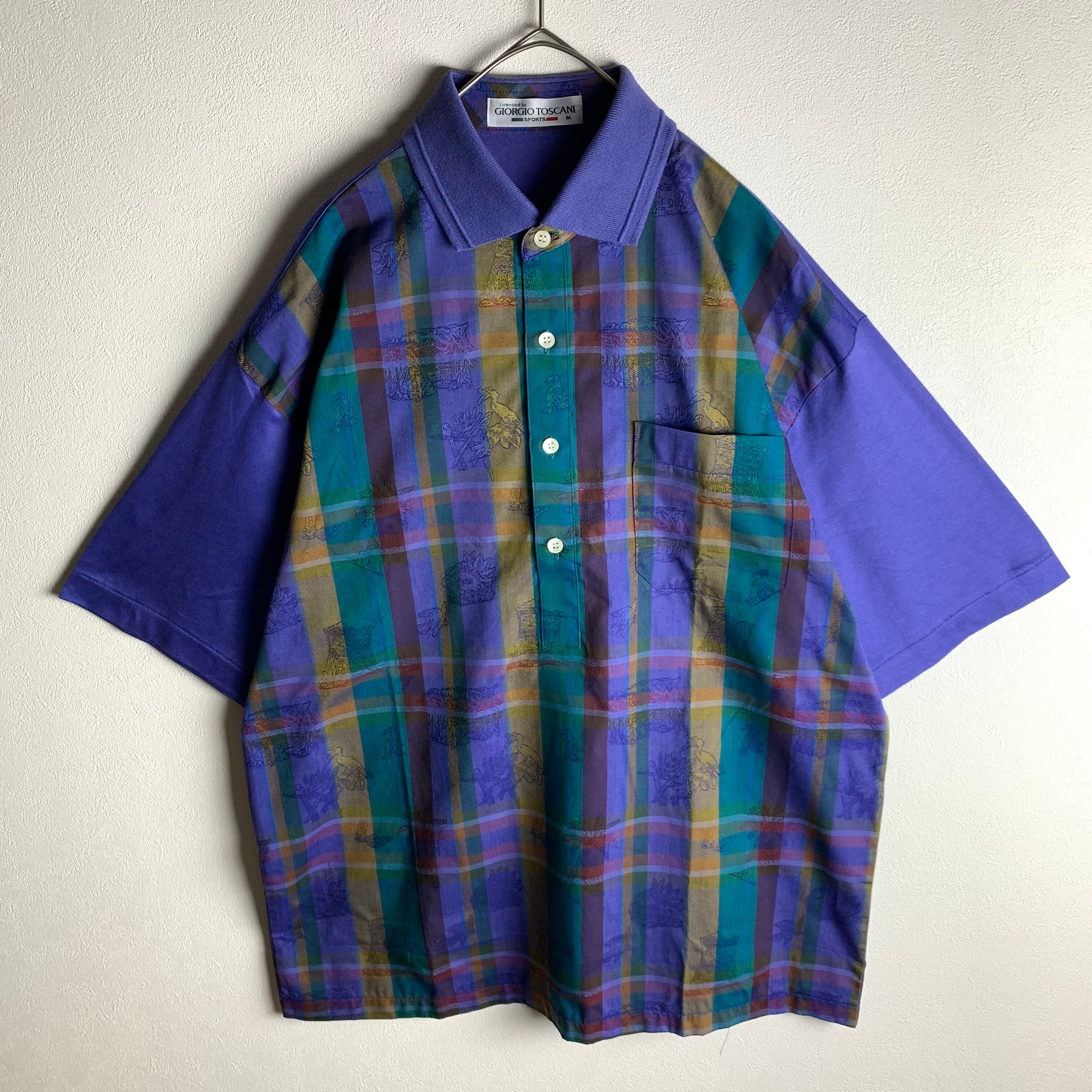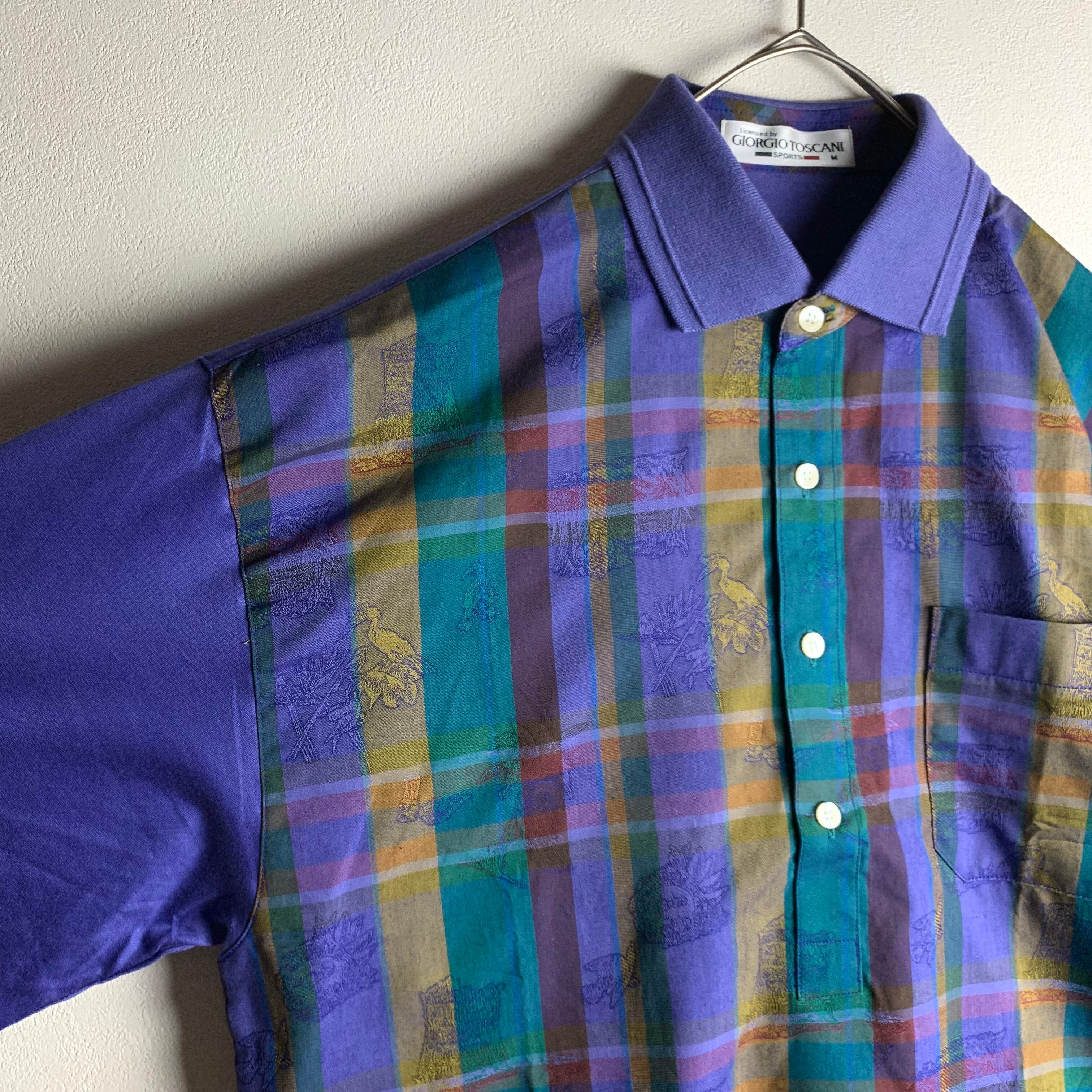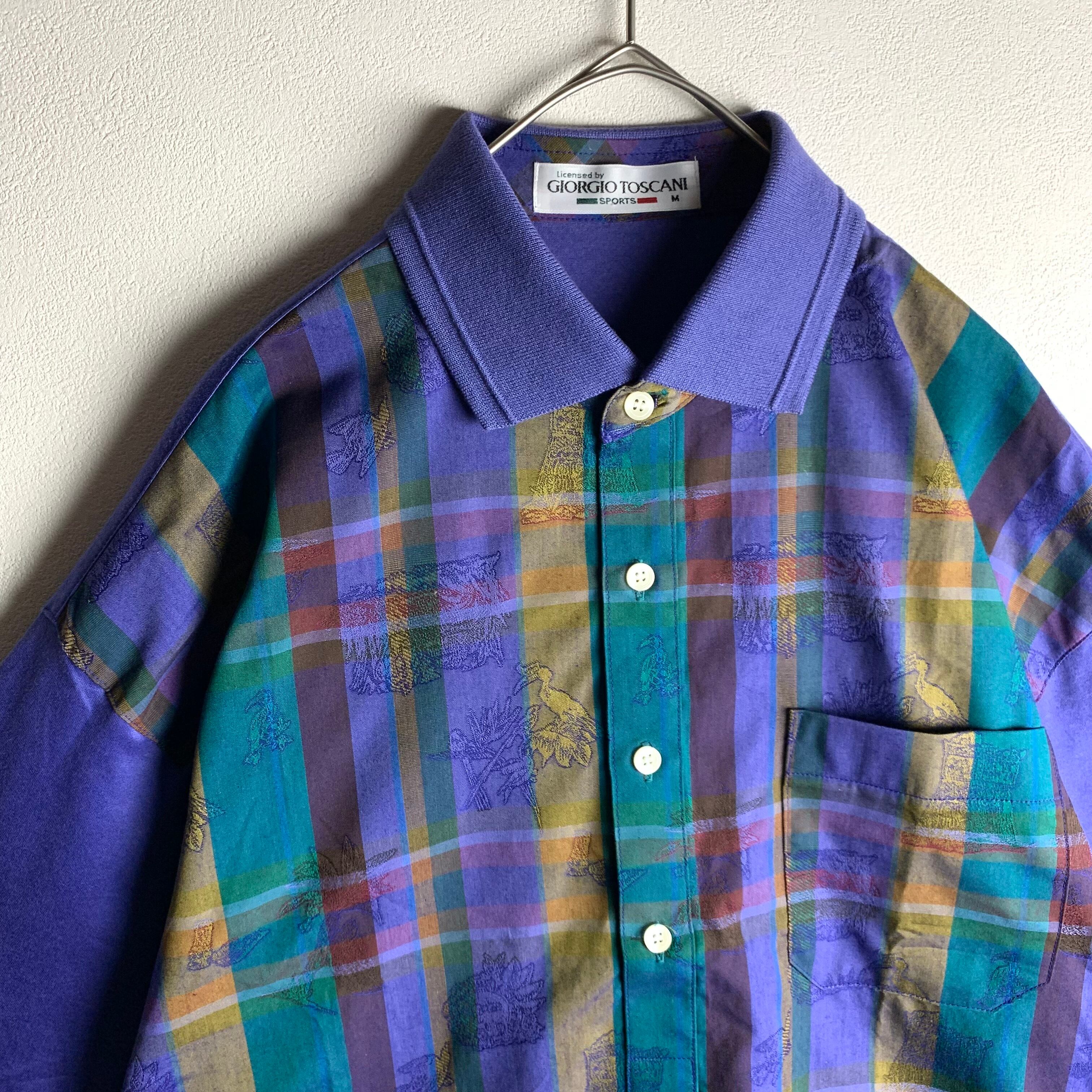 チェック柄の中に同系色アニマル柄が入っているポロシャツです。