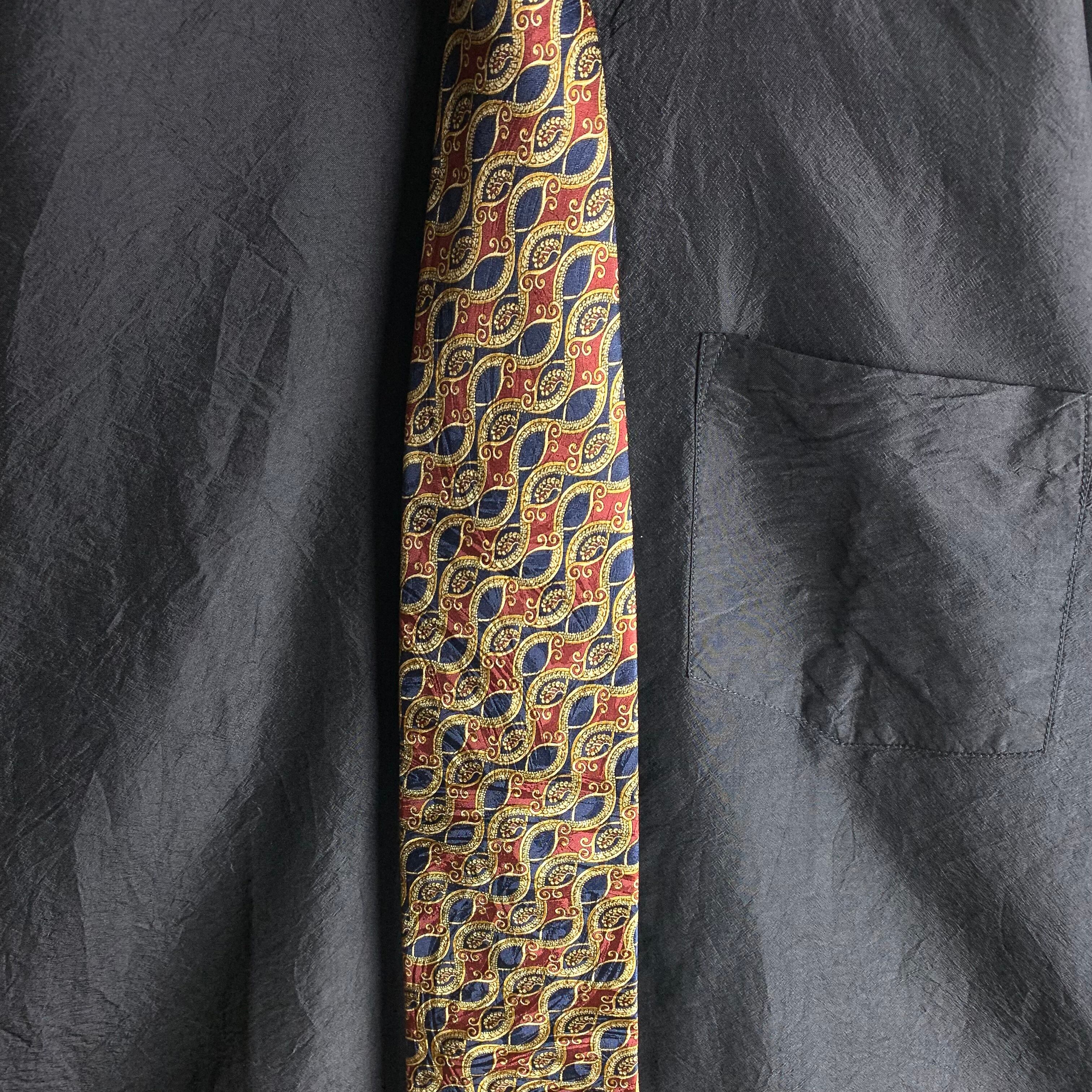 シワ加工シルクシャツとパターン柄ネクタイのセットです。