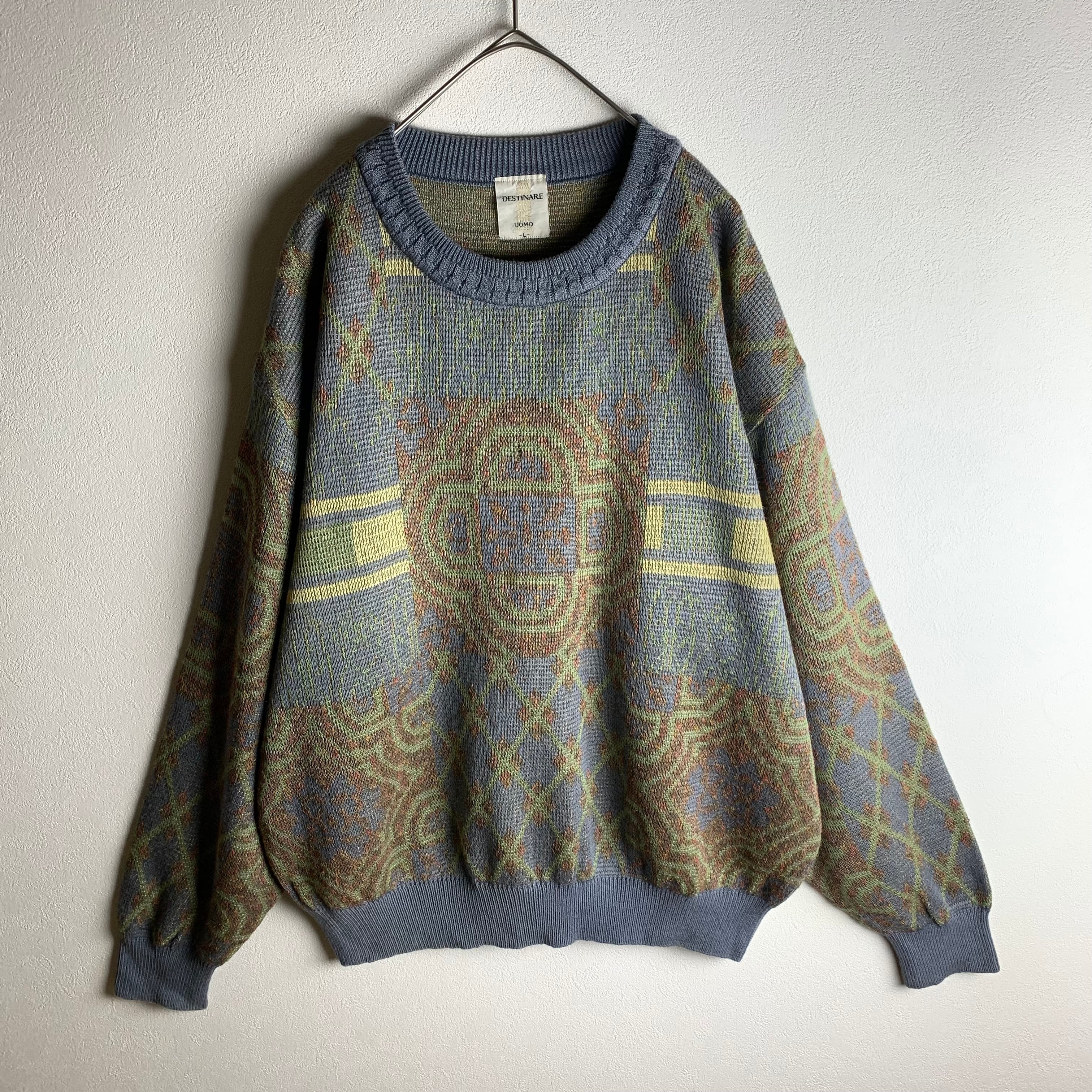 くすみカラーの総柄ニットです。
