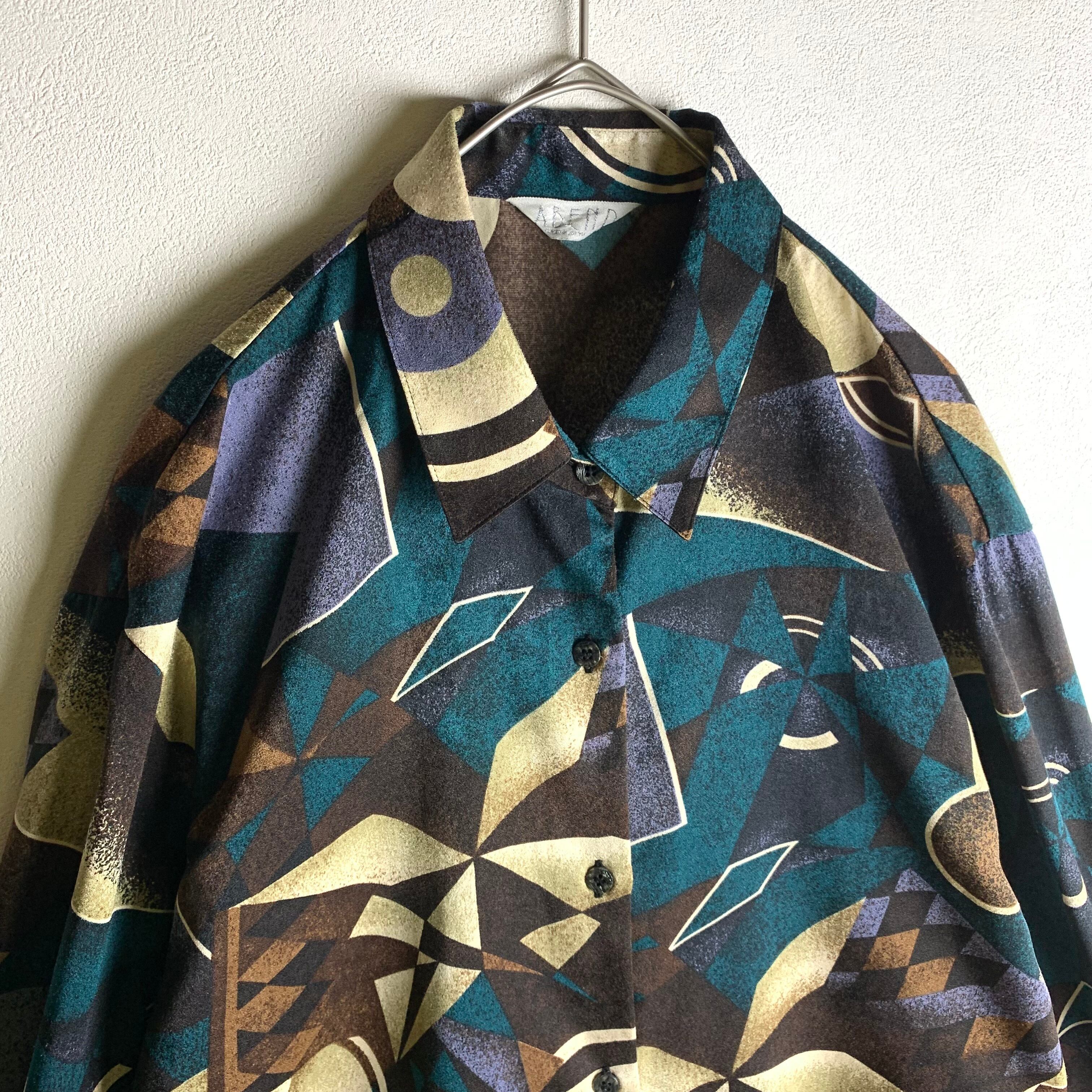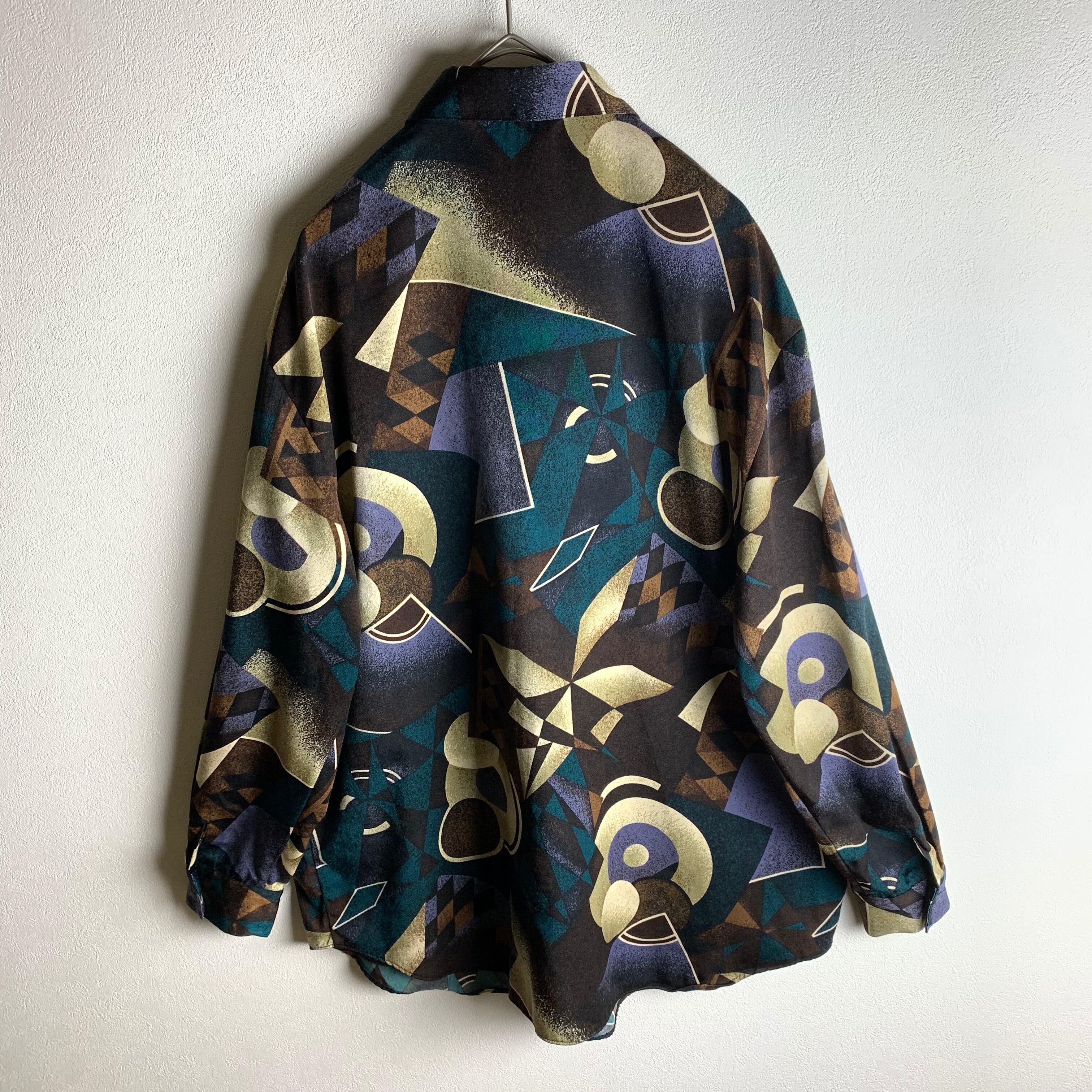 幾何学柄のダークカラーシャツです。