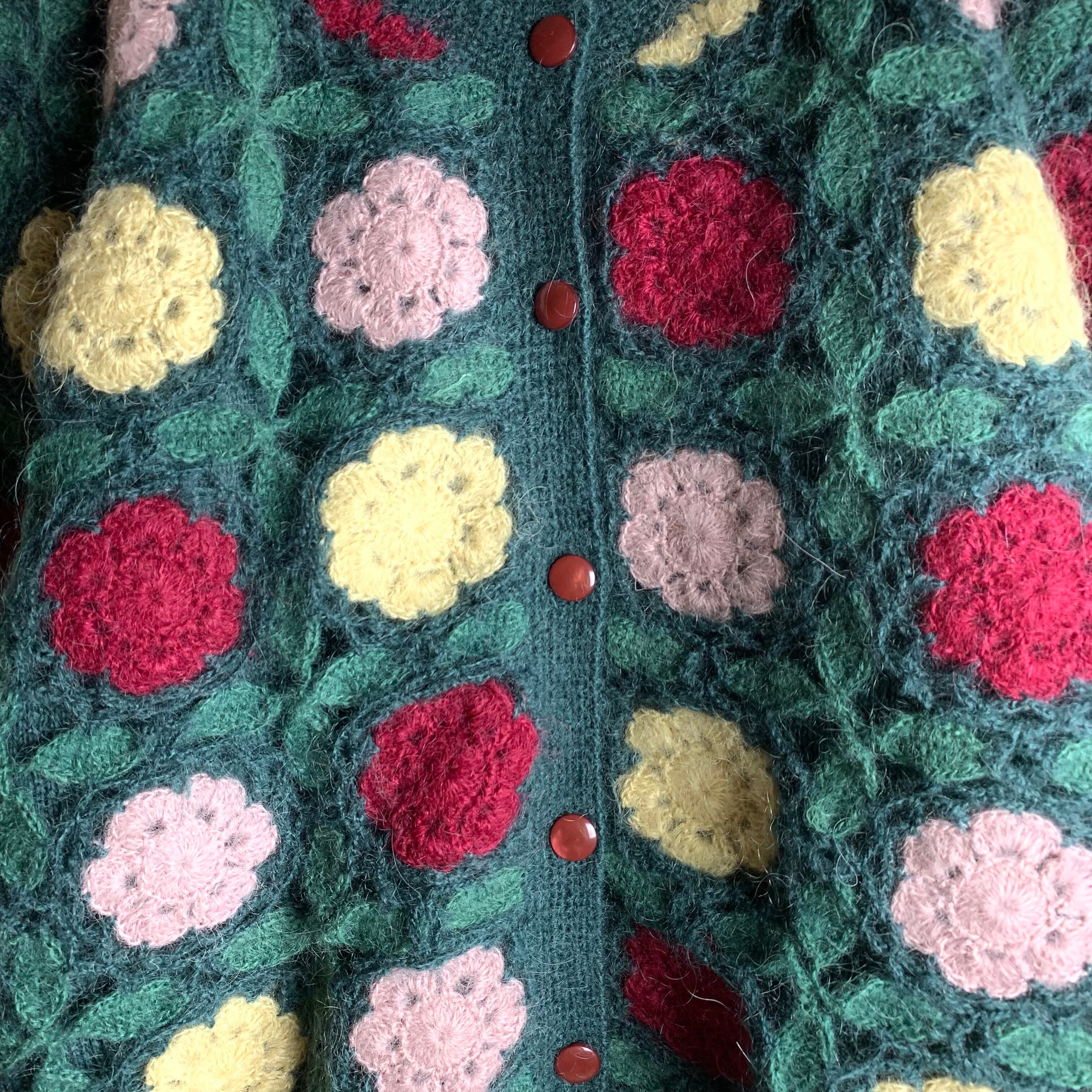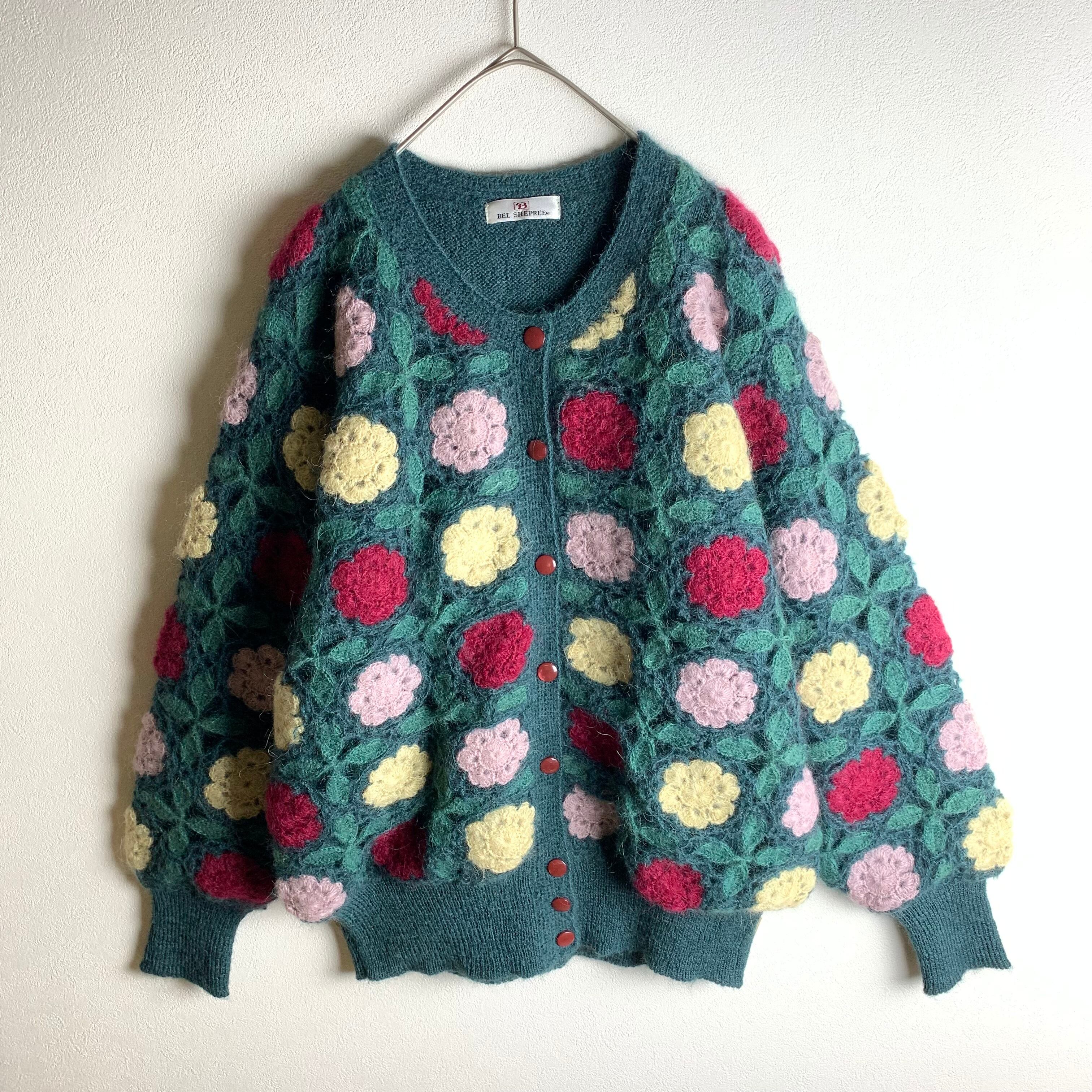 立体ボタニカルのモヘアライクニットです。