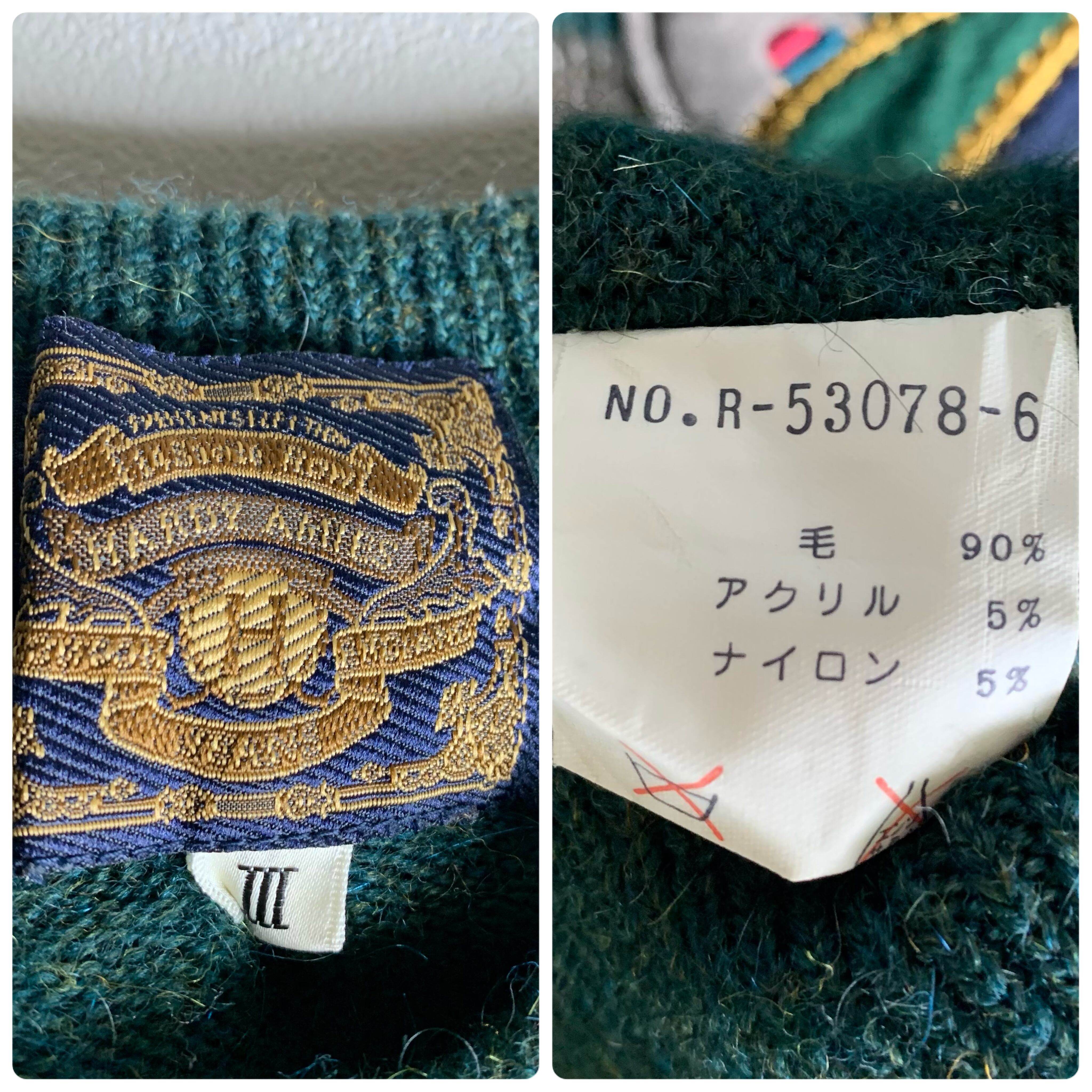 ダークグリーンの刺繍ニットです。