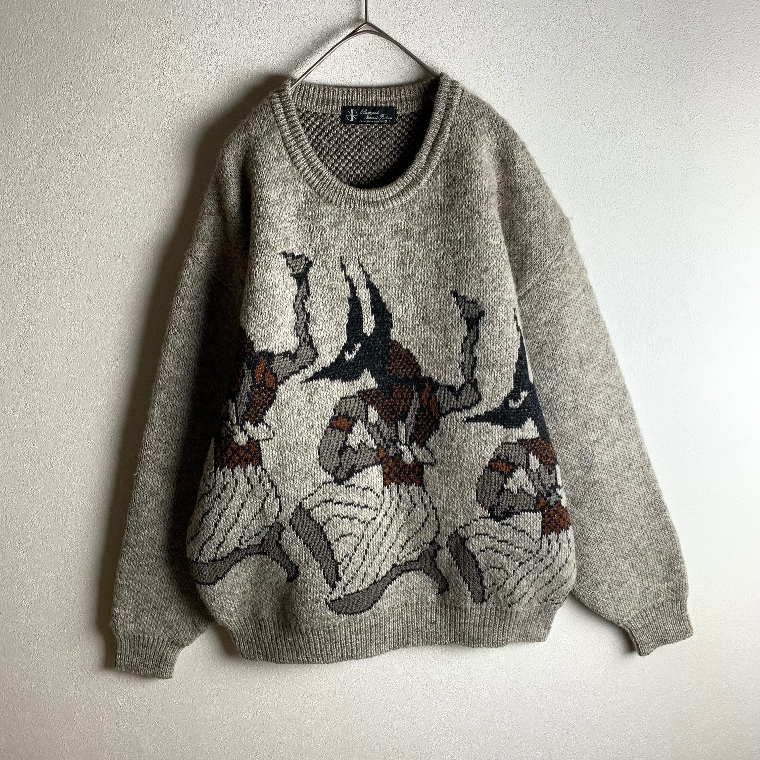 アヌビス柄のくすみカラーニットです。