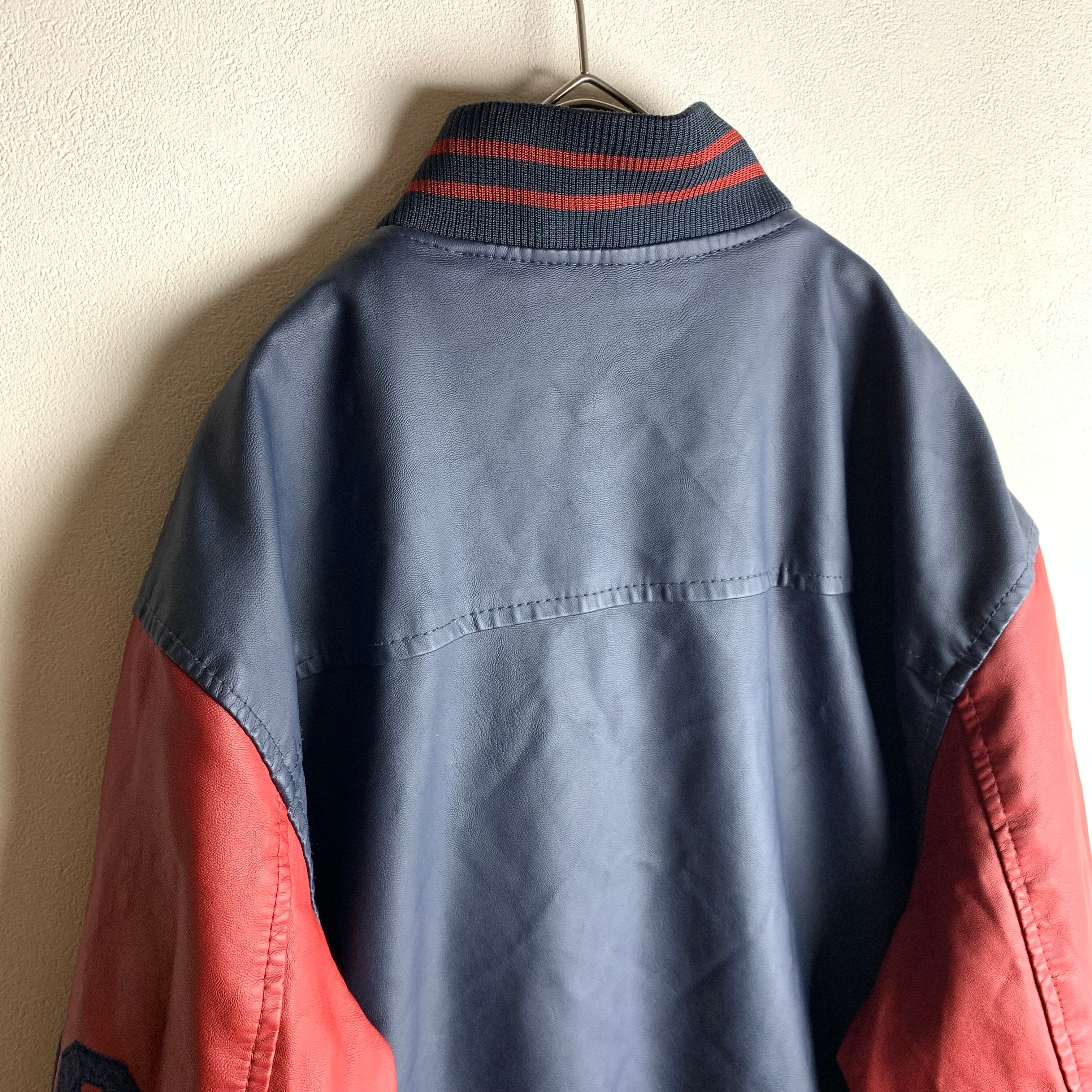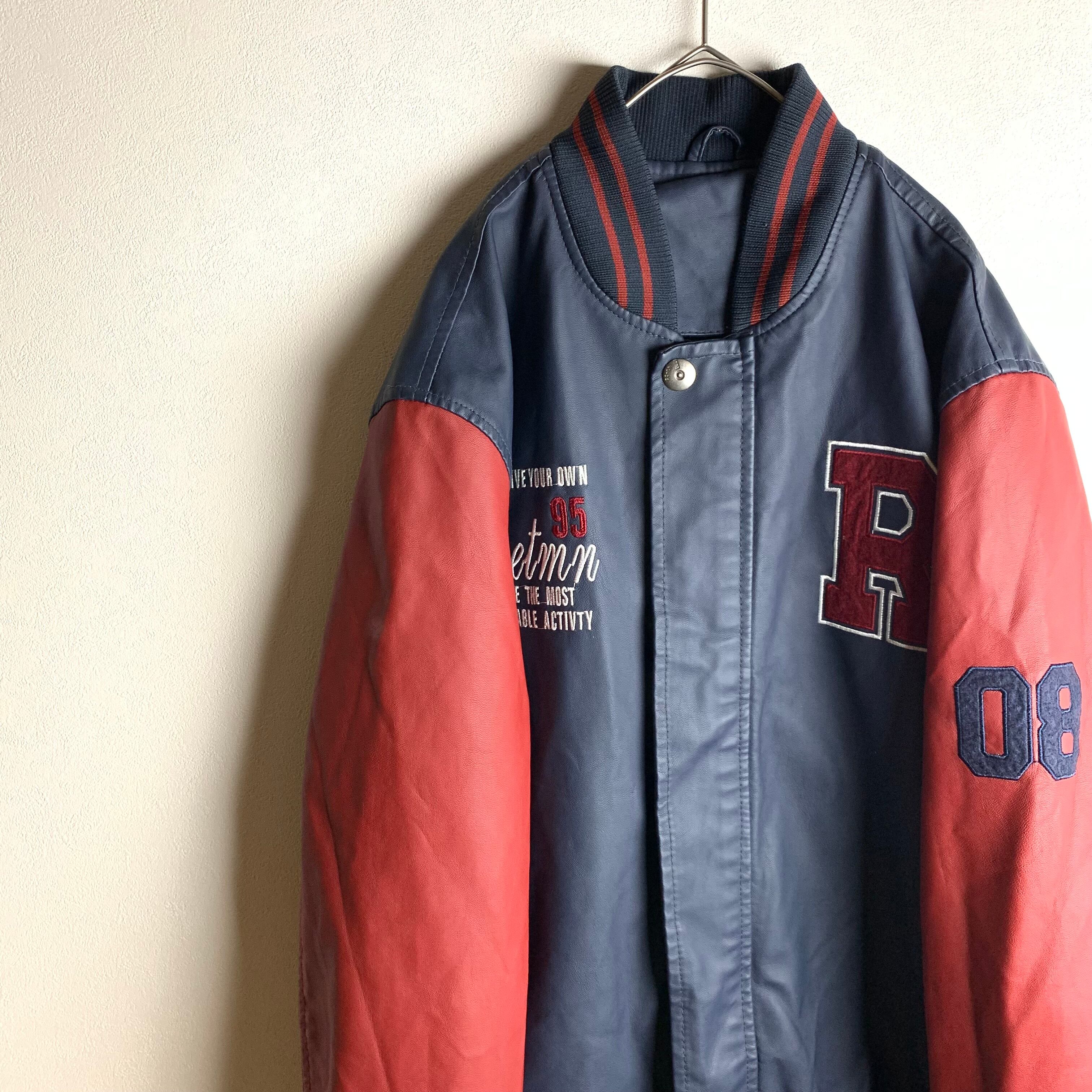 刺繍とワッペンがあるバイカラースタジャンです。
