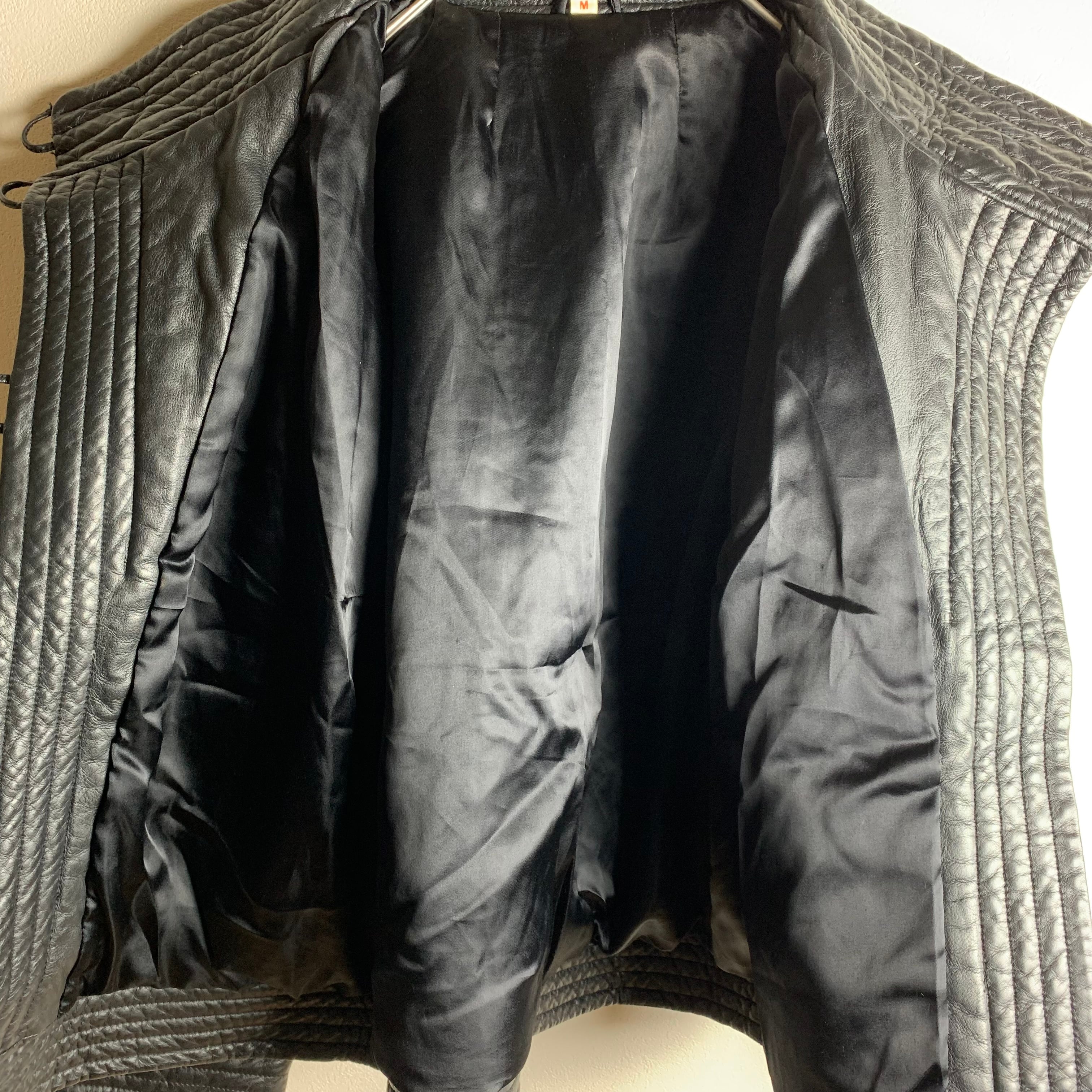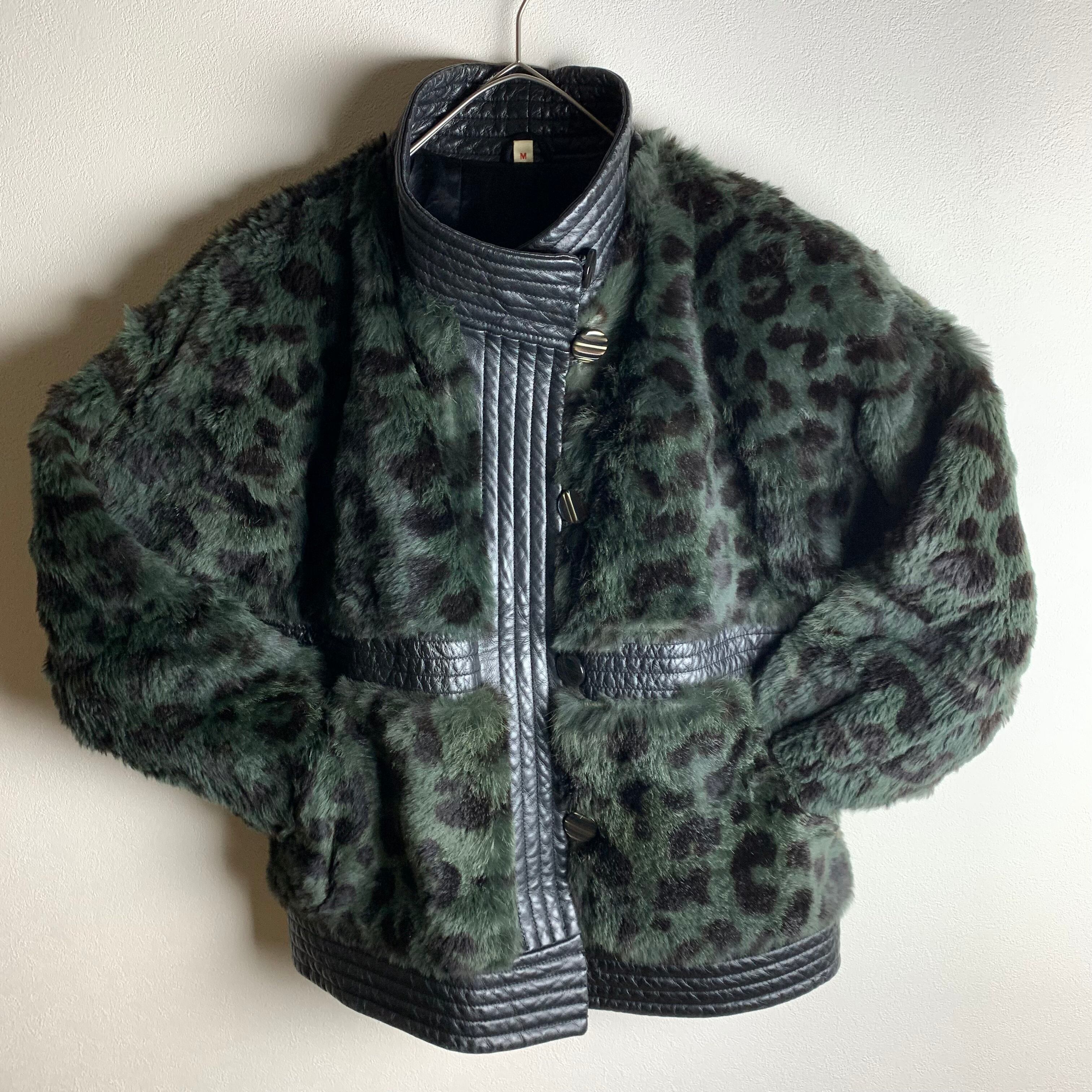 うさぎ毛皮でヒョウ柄のファーレザージャケットです。