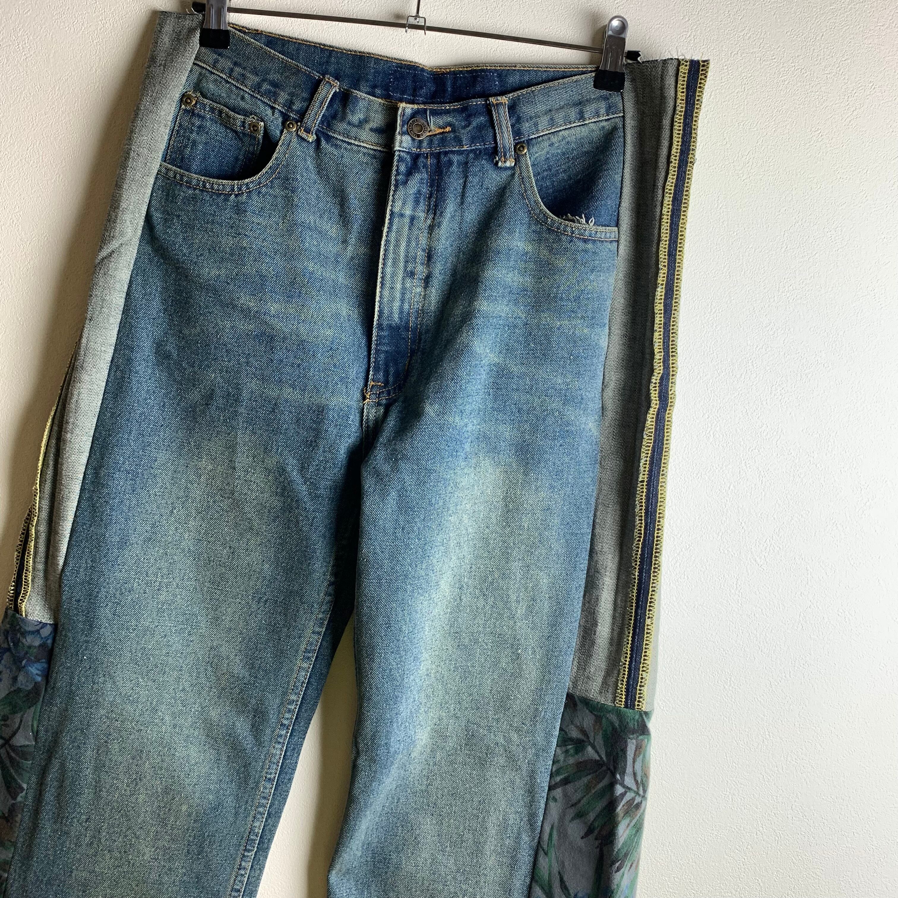 くすみボタニカル柄のリメイクデニムです。