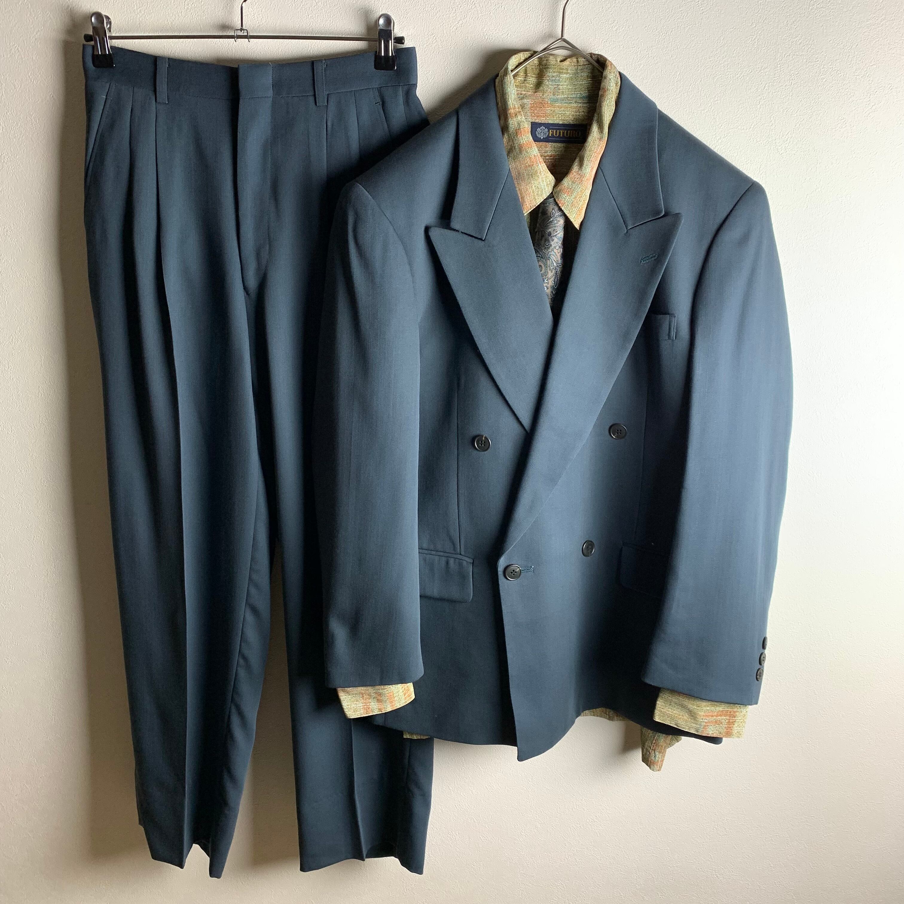 1.ダークグリーンのダブルボタンセットアップです。