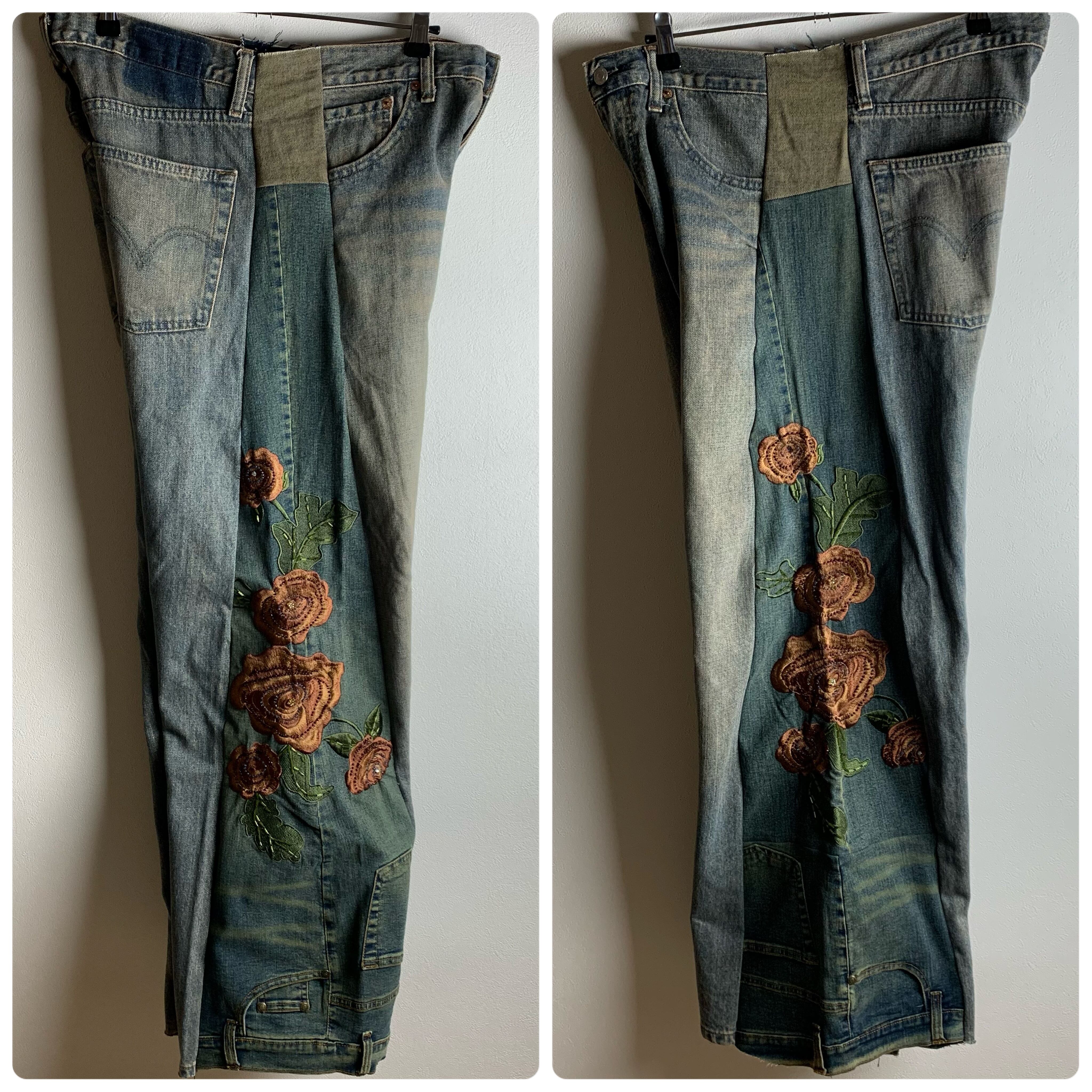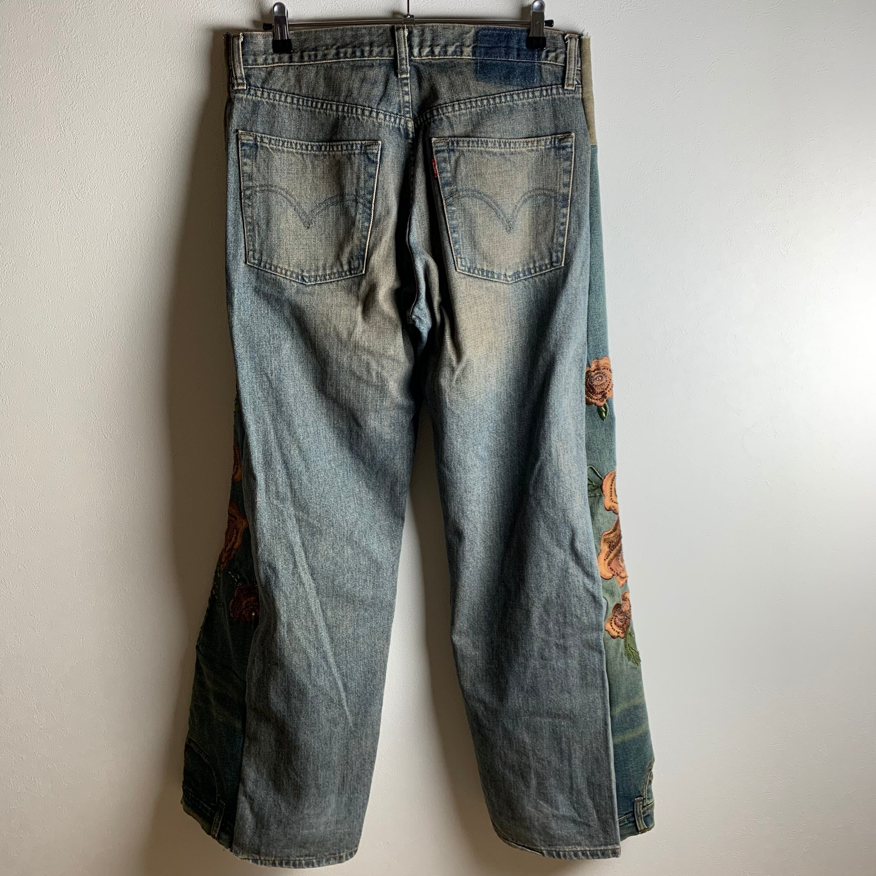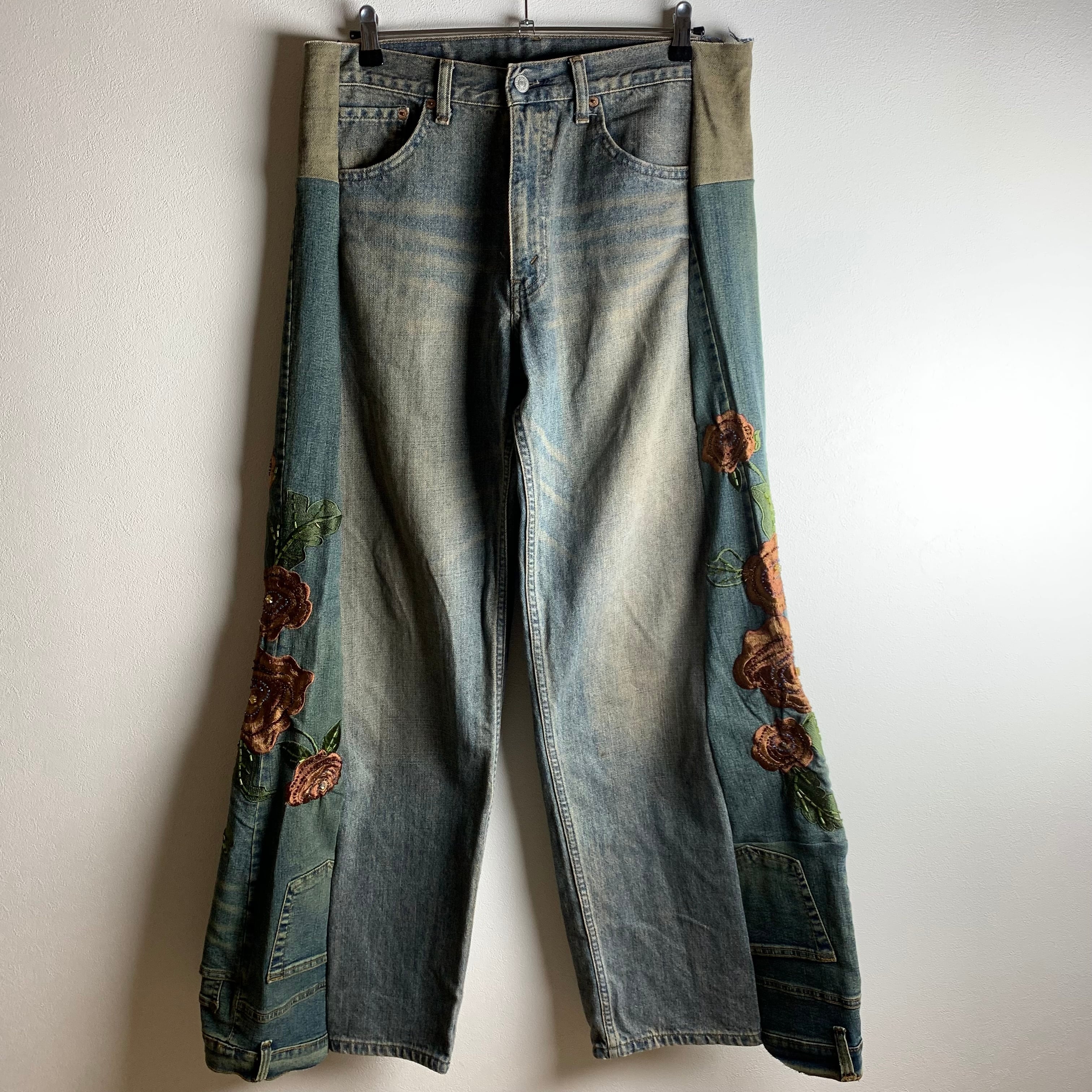 ヴィンテージ感ある刺繍入りのリメイクデニムです。